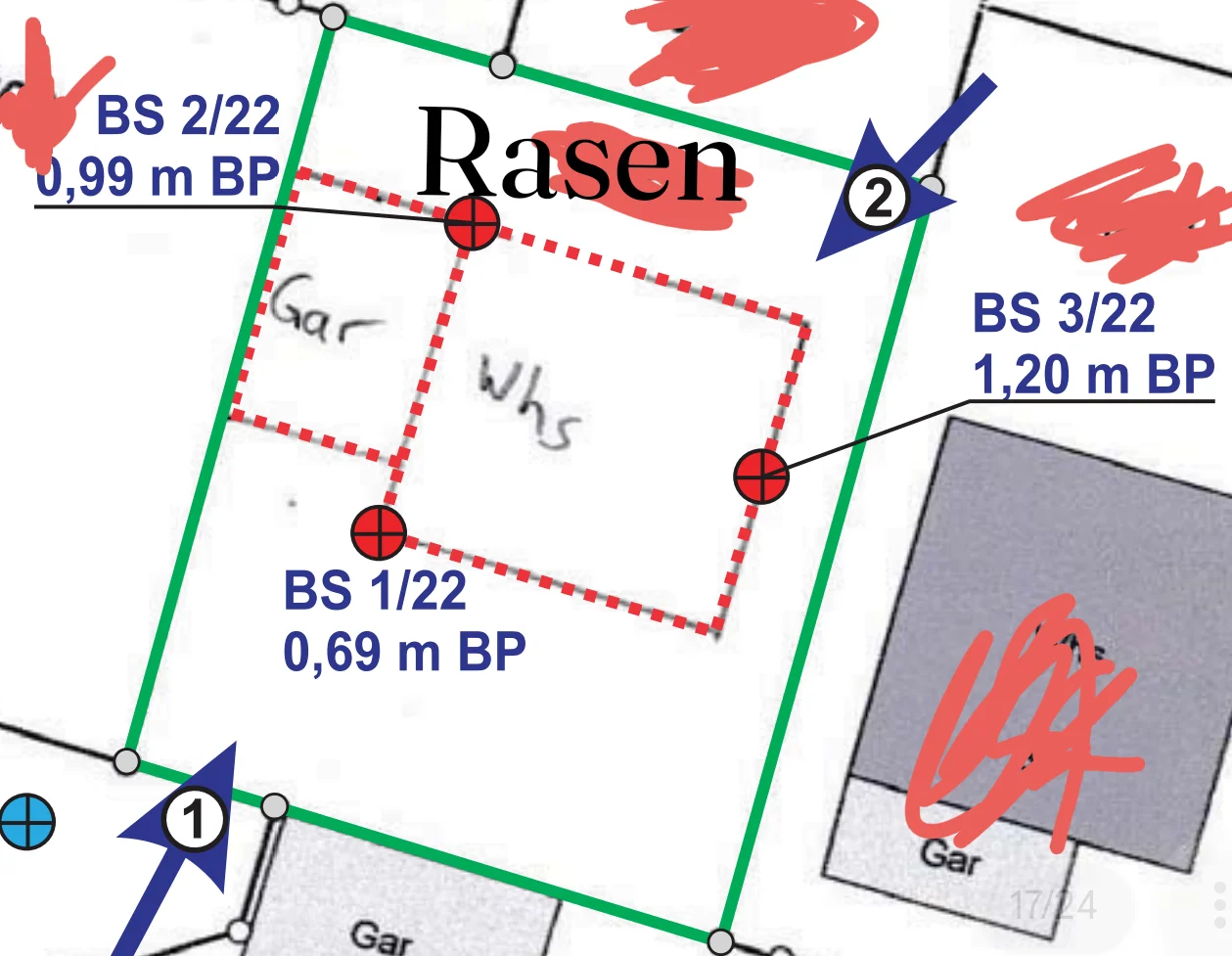 Ich hab euch zudem noch ein paar Bilder des ersten Bodengutachten, das wir selbst haben anfertigen lassen, angehängt. Auf denen sieht man auch wo die Proben entnommen wurden.