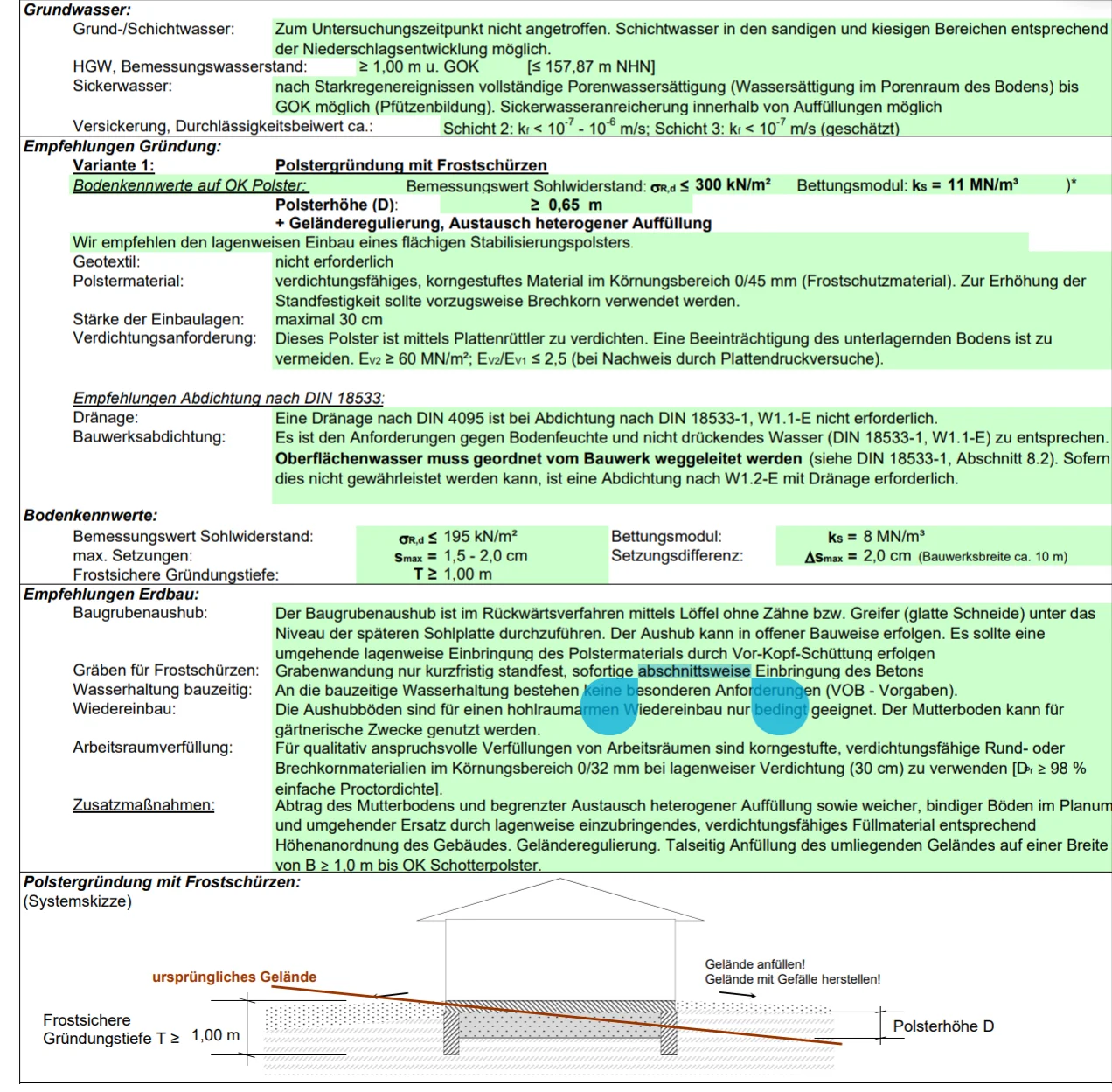 • Wenn nichts größer umgeschichtet wurde, sondern lediglich oberflächlich was hin-und hergeschoben wurde und Baumaschinen drauf rum gefahren sind, kann man schon davon ausgehen, dass der Aufbau im Wesentlichen dem Gutachten entspricht. Bloß halt oberflächlich verdichtet.