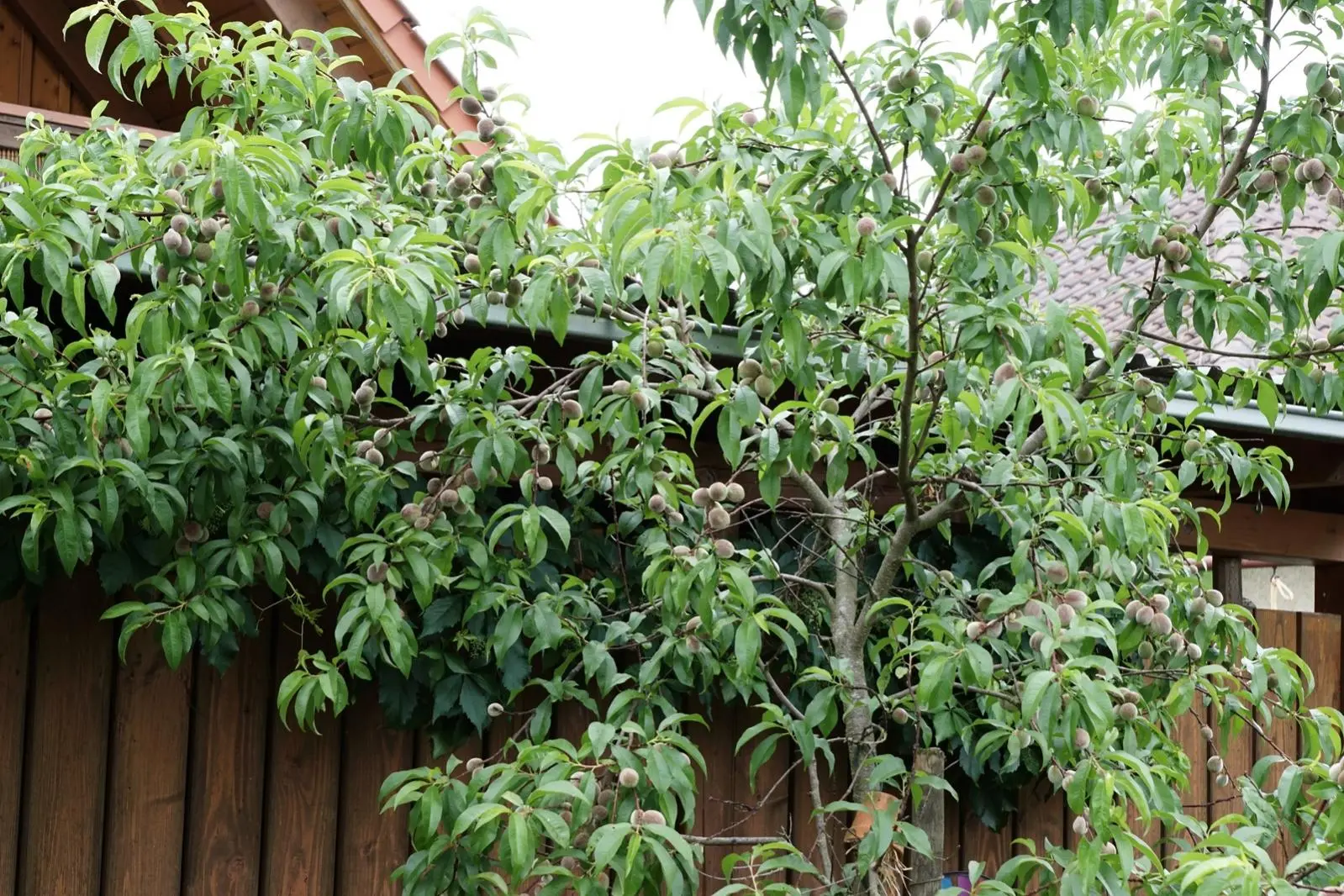 Taubertalpfirsich.webp Taubertalpfirsich- er muss nun unbedingt gestützt werden so schwer trägt er an seinen Ästen.