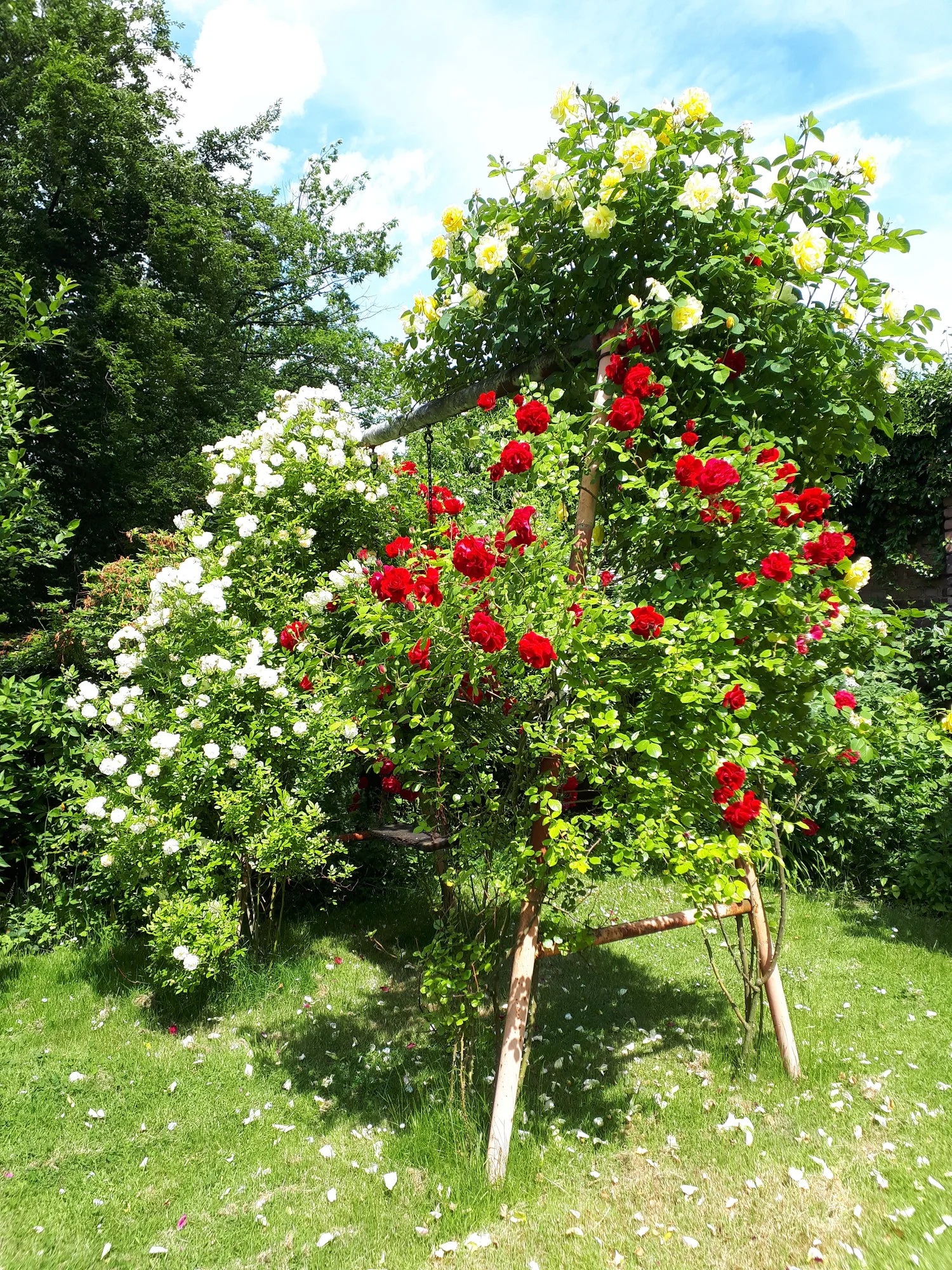 Das Schaukelbrett ist mittlerweile nur noch Deko. Es würde vermutlich noch nicht mal mehr ein Kind aushalten. Aber es ist toll, unter dem riesigen Rosenbogen zu stehen.Wow, @PalmenFan . , kann man auf dem Schaukelbrett noch sitzen? Dann wäre das mein Platz. Im Schatten und dann Rosenduft schnuppern!![]()