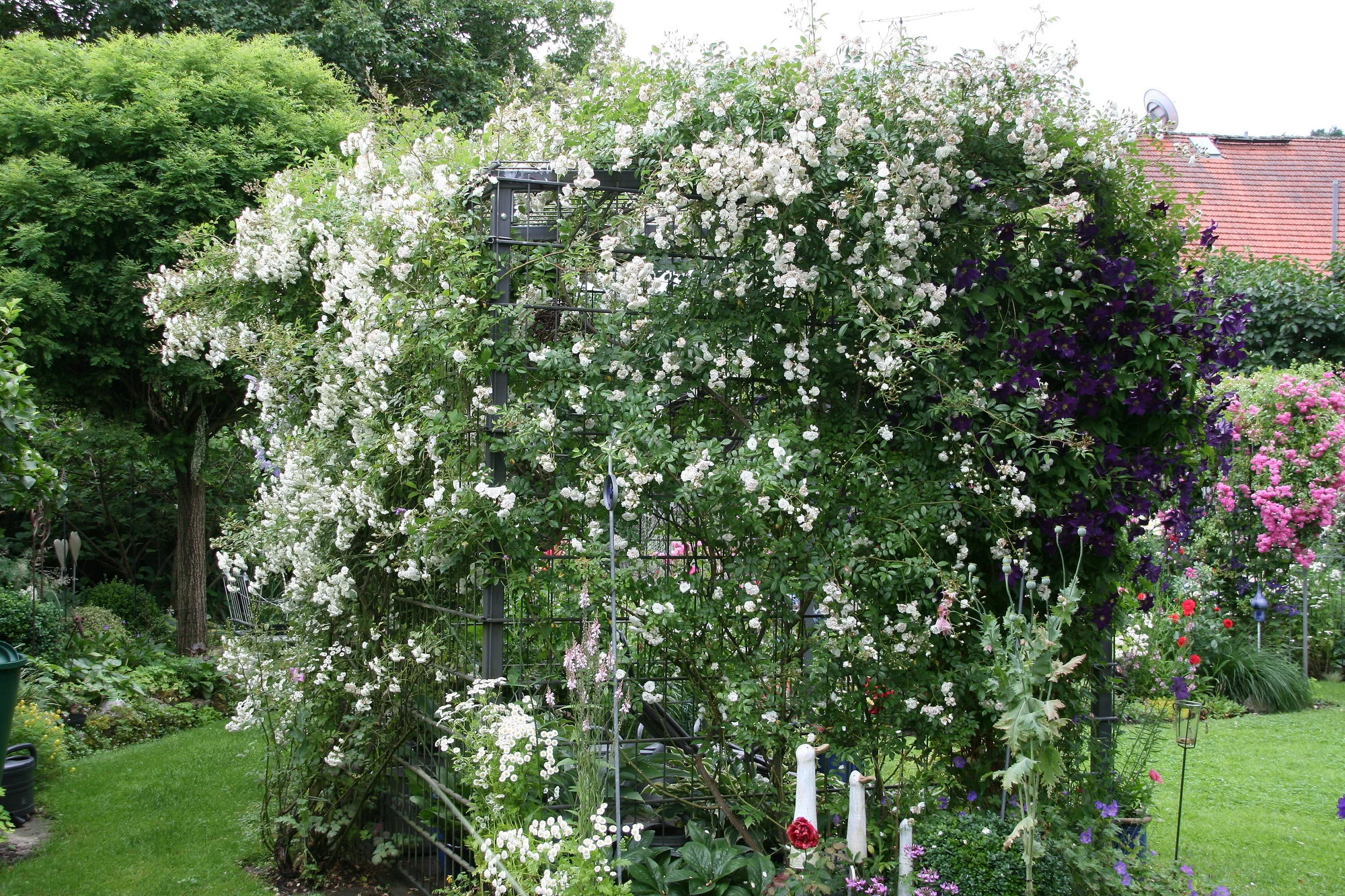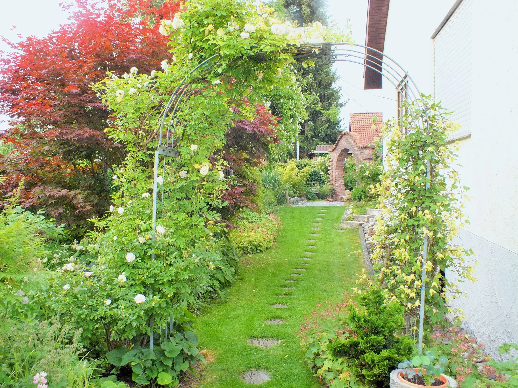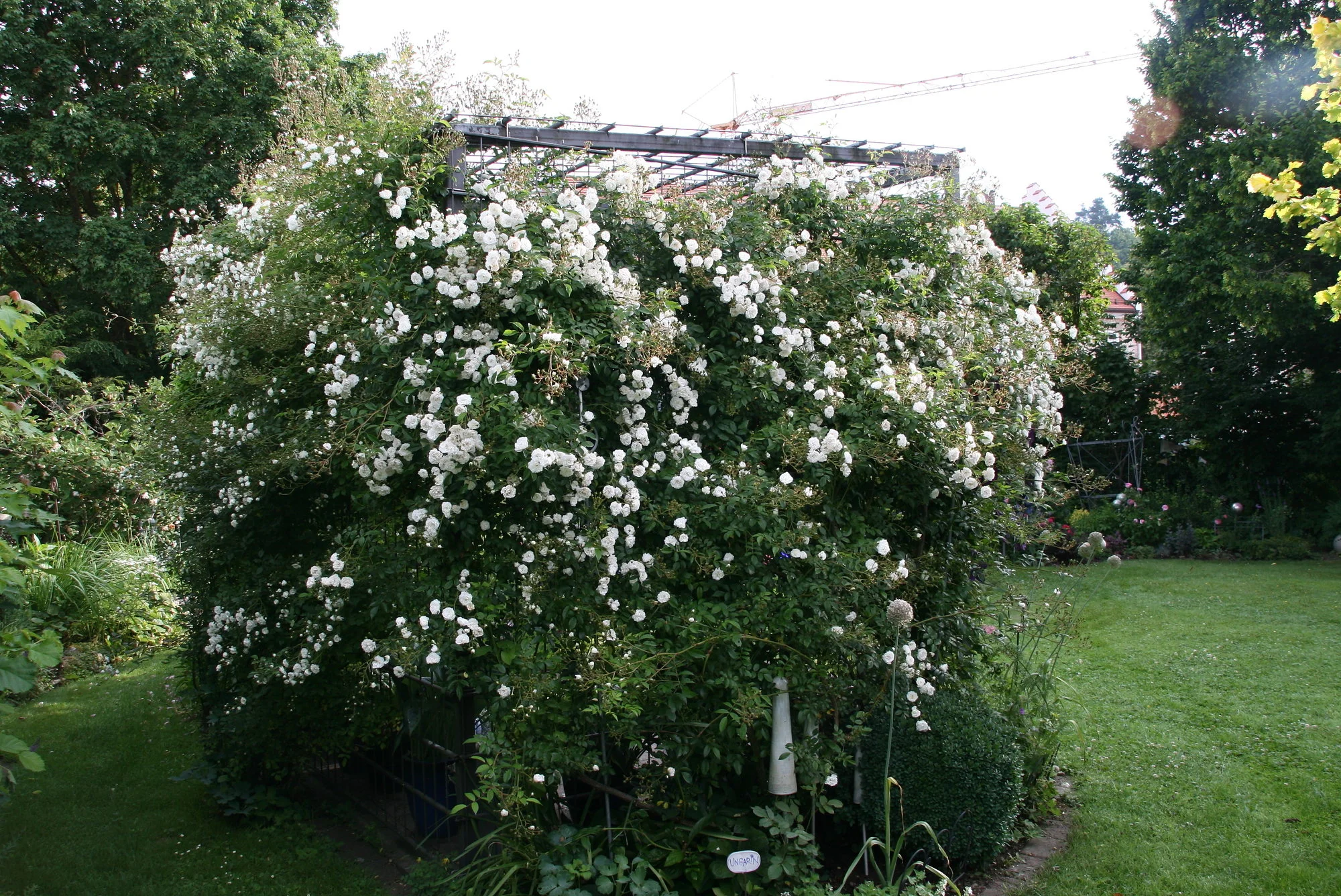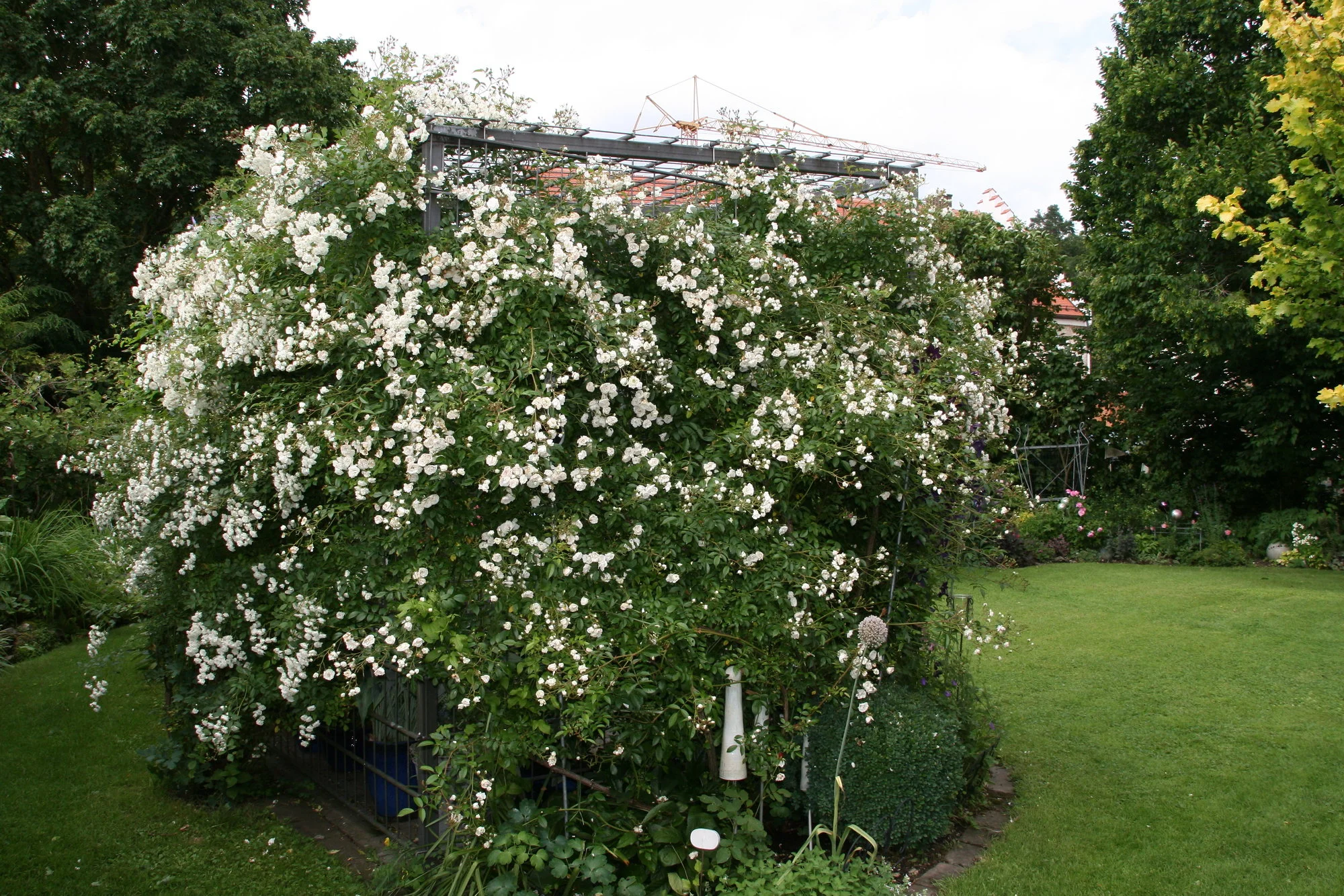 • Da ist sie nochmal am Schuppen bei mir im Garten. Im Friedhof kommt sie besser zur Geltung, weil ich sie schön waagrecht ziehen kann. Am Schuppen steht sie so am Eck, da ist sie nicht so leicht zu leiten.