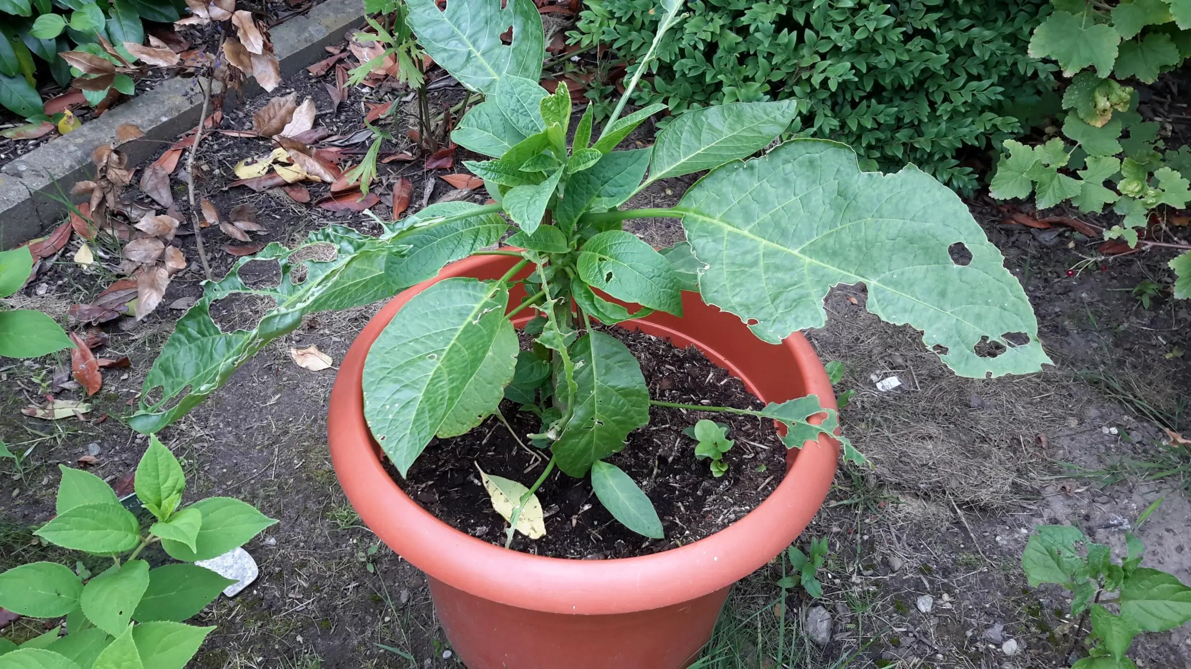 Sie steht im Kübel , damit ihr Schnecken und Co nicht so schnell an den Kragen können.