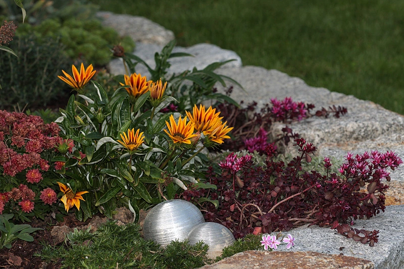 Ja, die Heidelbeeren leuchten schon rot, die Funkien gelb, und die meisten Gräser blühen mit ihren fedrigen Büscheln, aber sonst gibts noch viele Blumen die blühen, z.B. die Tagetes, die sind augenblicklich in Hochform!