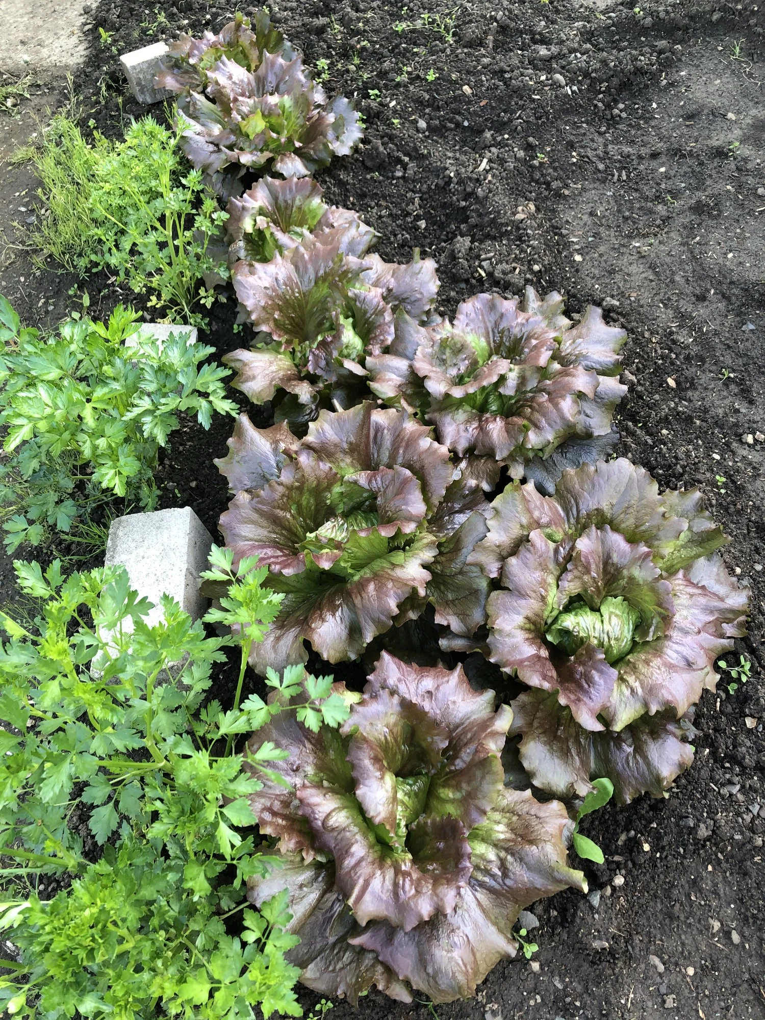 Wenn der Maikönig und der italienische Kopfsalat aufgefutter sind versetze ich dorthin Frisée und Eissalat. Früher habe ich den so Anfang Juni an Ort und Stelle nachgesät, wegen den hohen Temperaturen und der Trockenheit in den letzten Jahren hat das aber nicht mehr funktioniert.