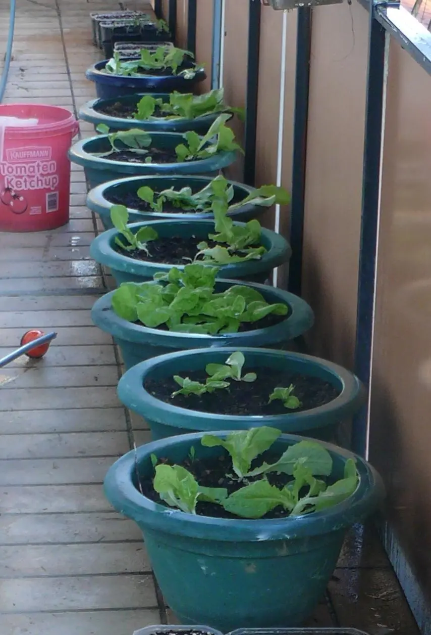 Im 2. Bild stehen meine Salate im Balkonschatten und hoffe so den Pflanzen vorzugaugeln, dass der Tag noch nicht lang genug ist um zu blühen um so das schießen zu verhindern.