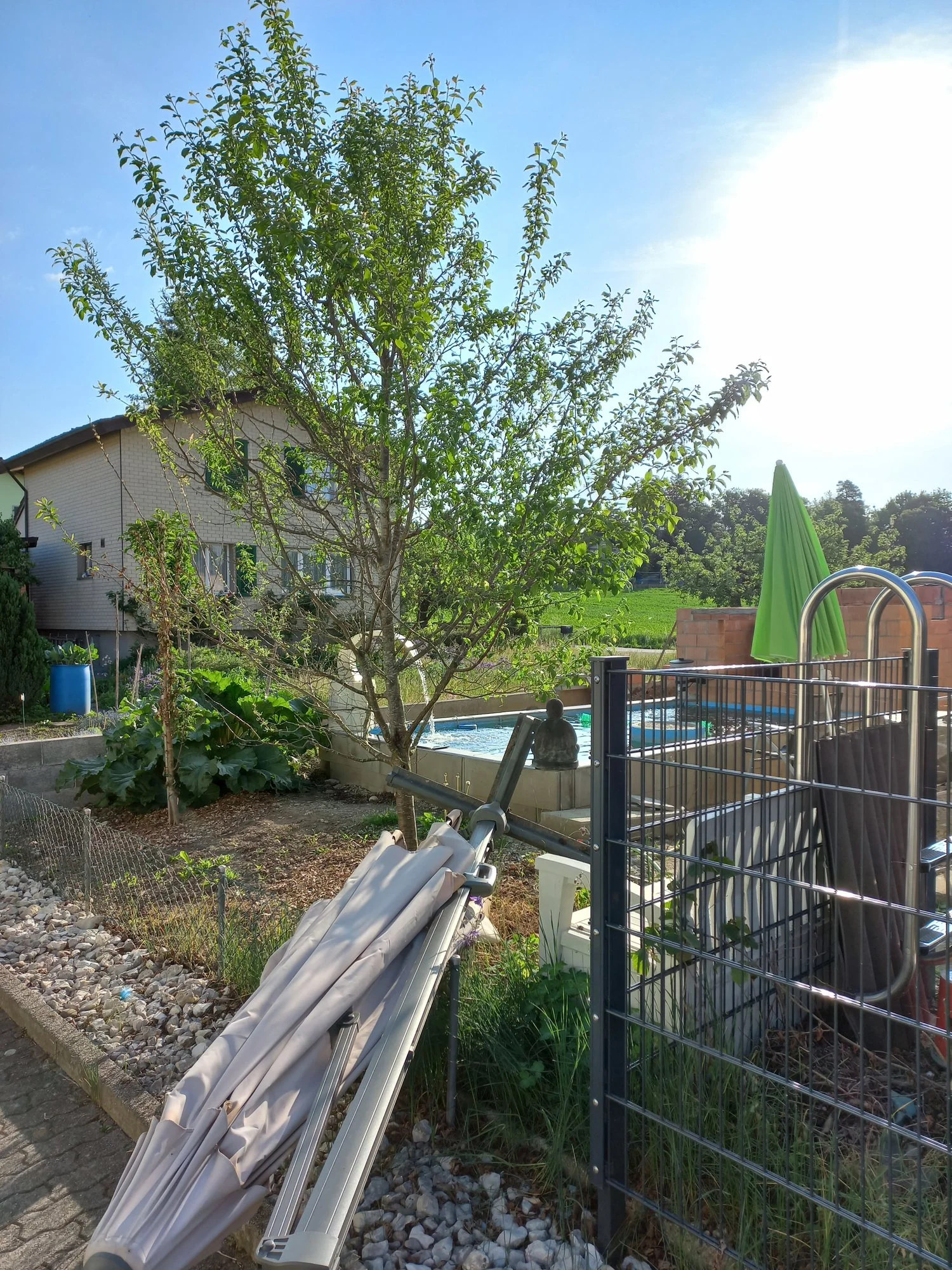 Guet Idee, Galileo. Ich mache mir aber mehr Sorgen wo ich mich hinstellen könnte. Mein GG ist ein noch viel schlimmerer Chaot als ich und bastelt seit letzten August an dem Teich rum, den man auf den Fotos sieht. Da steht Zeug rum, das glaubst du gar nicht! Den Sonnenschirm kann ich zum Beispiel auch nicht wirklich wegstellen.