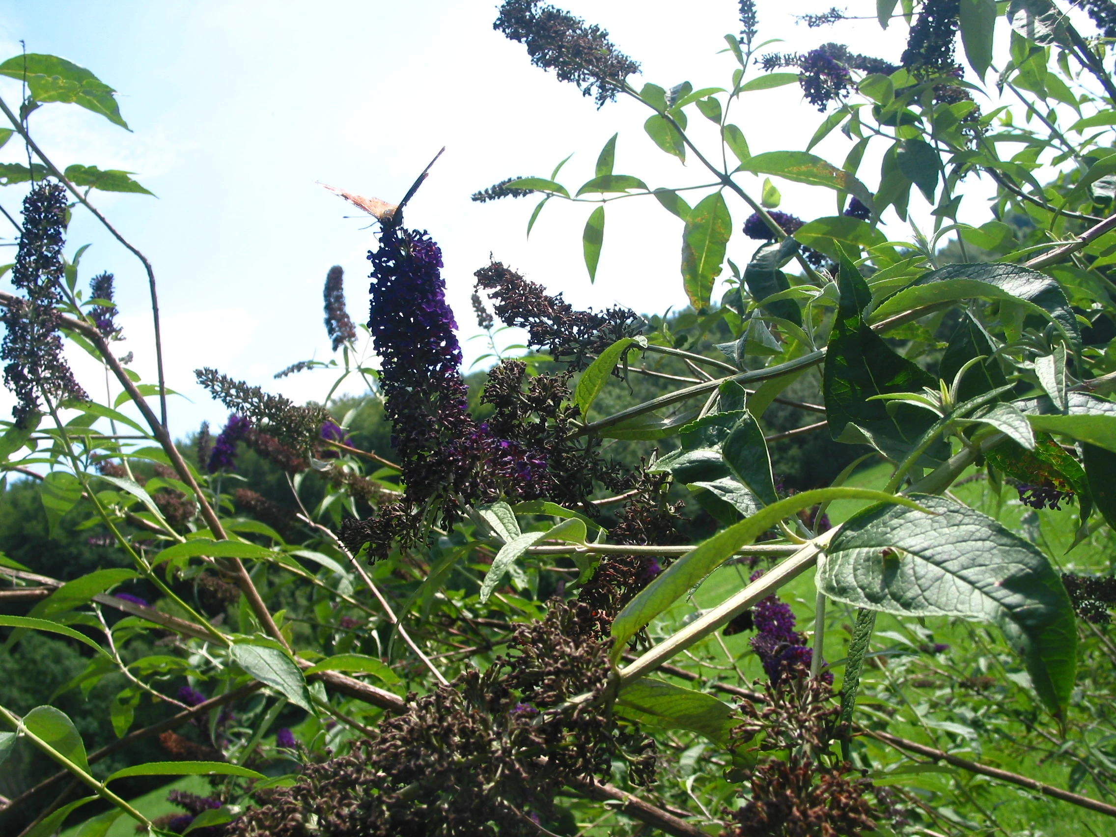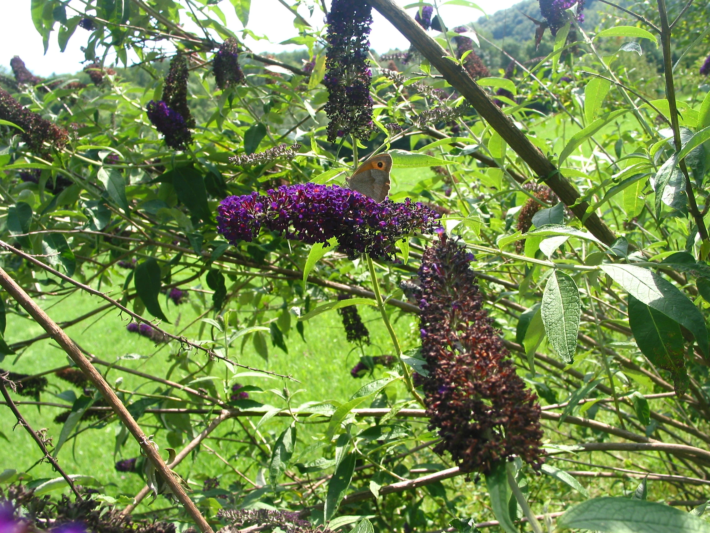• Endlich hatte ich auch mal Glück auf der Schmetterlingsjagd. Am Sommerflieder meiner Nachbarin, der genau auf der Grundstücksgrenze steht, tummelten sich heute Morgen die Pfauenaugen. :D