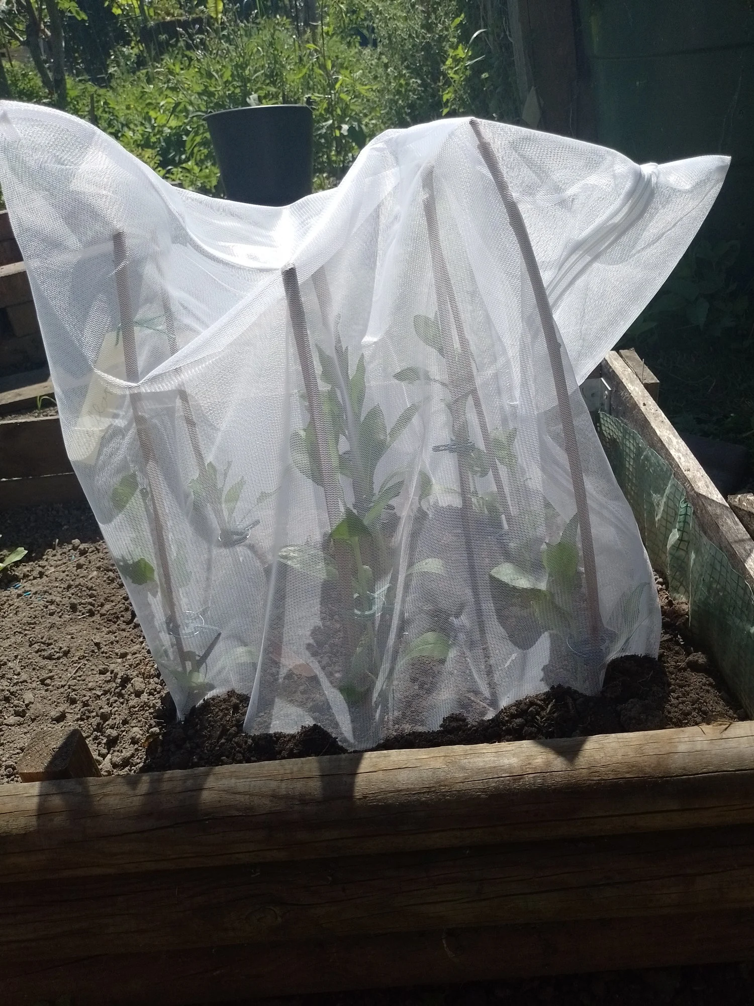 • So, die Luffas und den Saflor habe ich jetzt mit Wäsche Netze geschützt, wenigstens solange bis sie etwas gewachsen sind, habe sie eigegraben, bin gespannt was die Schnecken sagen 😅