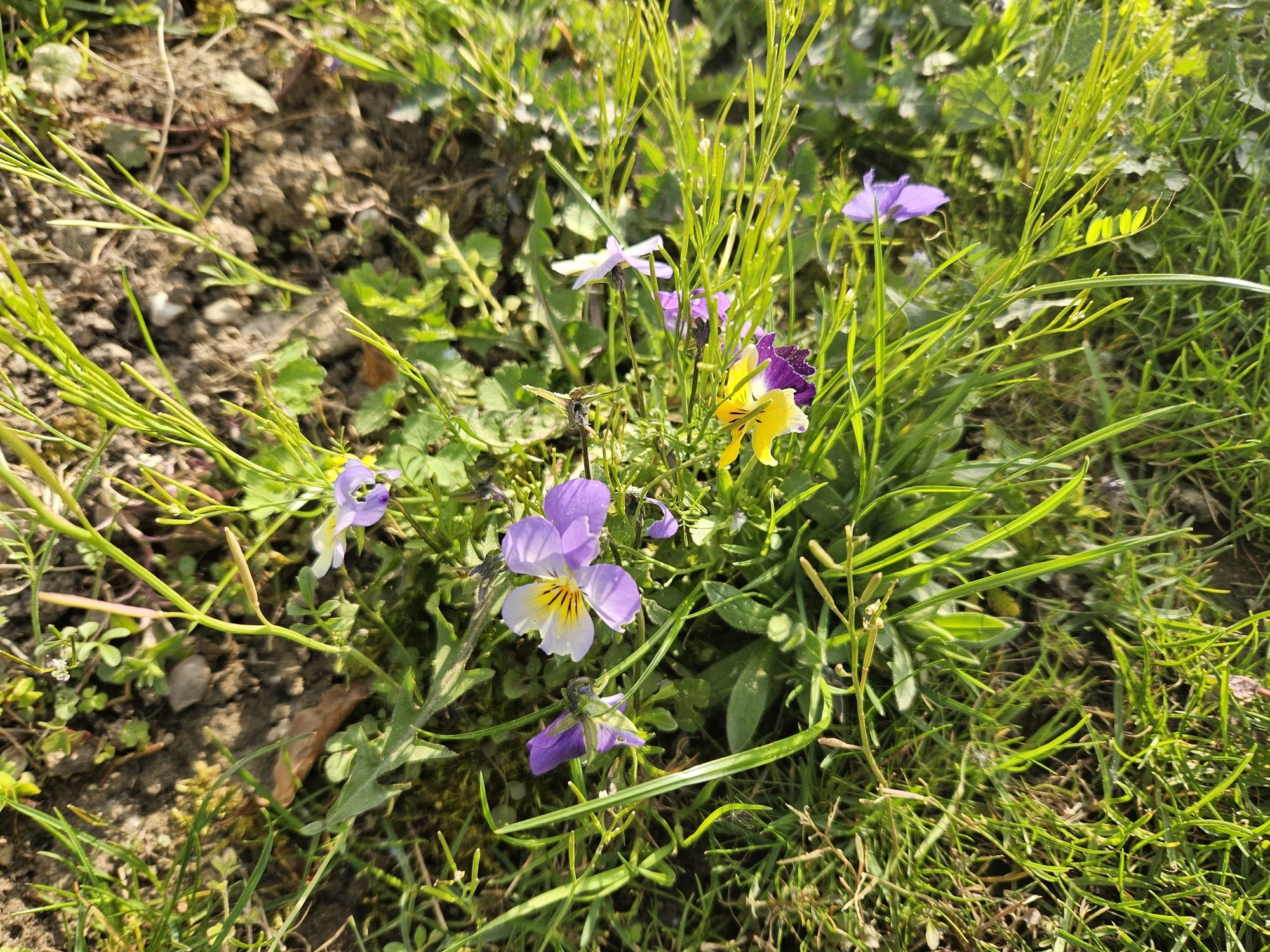Ich glaube das ist Schaumkraut/Wiesenschaumkraut... davon wächst hier schon einiges, aber das lässt sich superleicht entfernen, und es würgt nichts zu Tode.allerdings erkenne ich um dem Foto mit dem Stiefmütterchen auch „Springkraut“