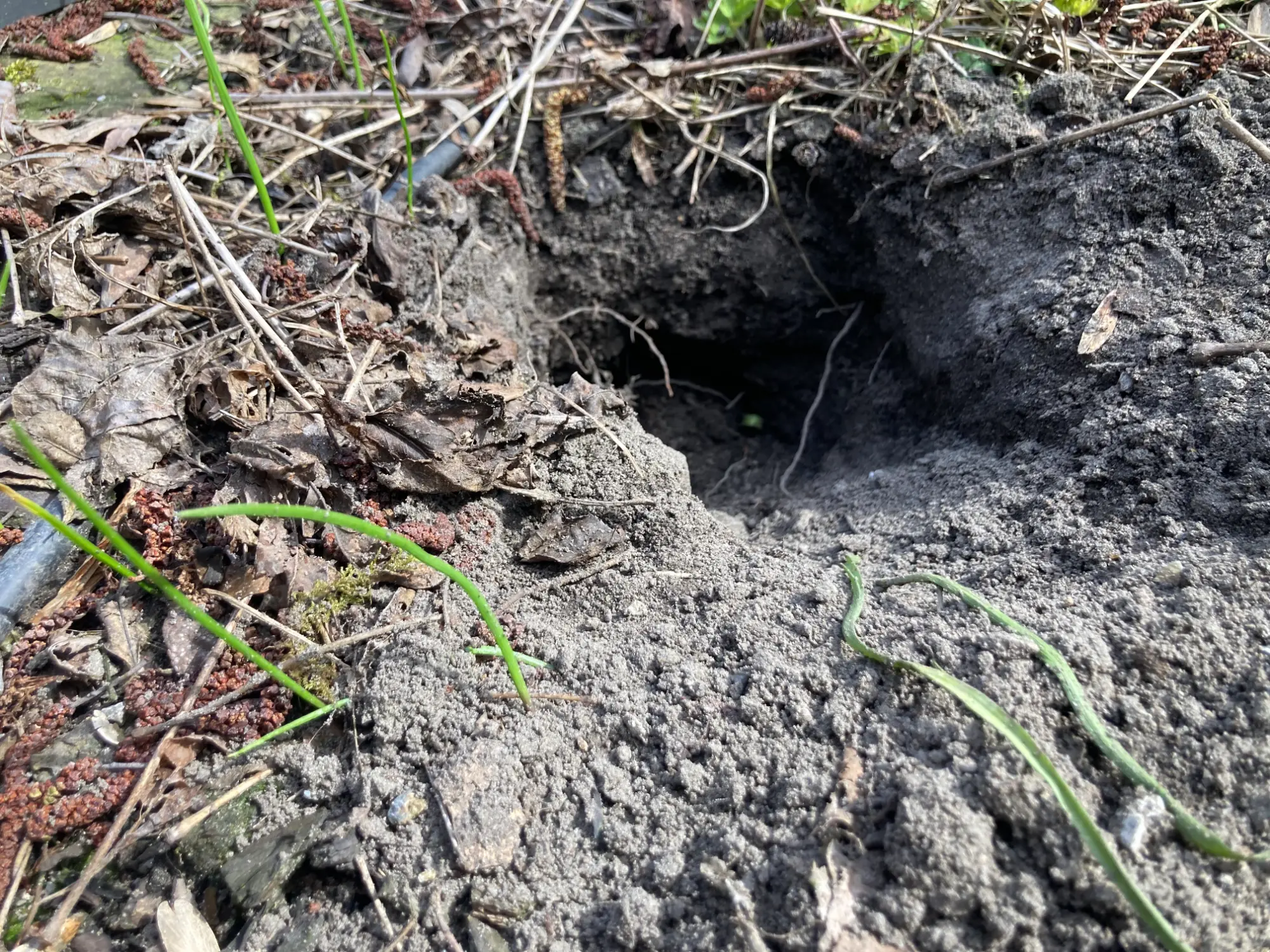 Die Gänge (im Rasen) führen auch senkrecht nach unten und die Häufen sind definitiv nur Erde…