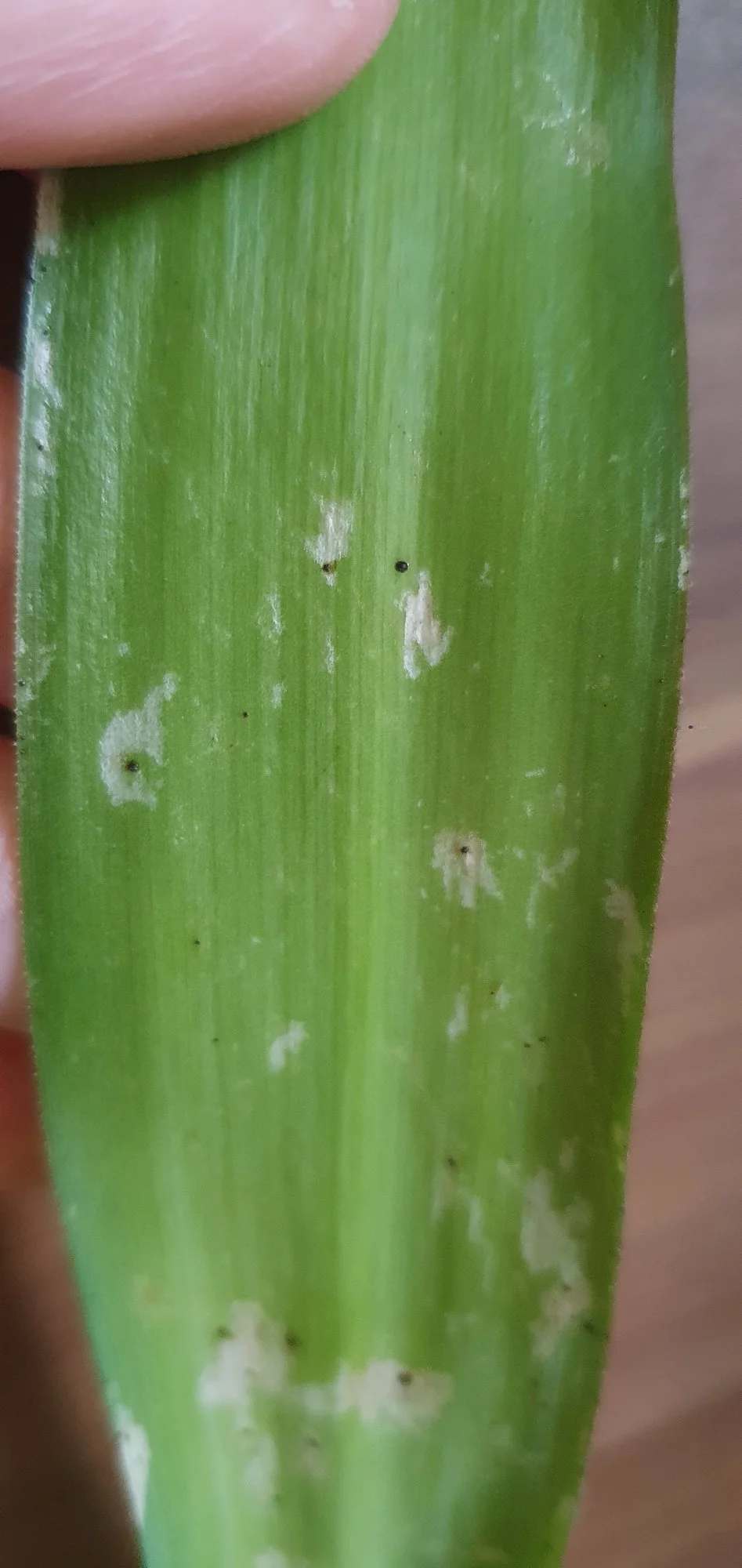 Heute entdecke ich an der Unterseite der Blätter meiner Yucca Palem schwarze Punkte.. Sie wirken wie angeklebt, man kann sie abkratzen. Um die Punkte werden die Blätter farblos. Etwas lebendes, krabbelndes konnte ich auf der Pflanze nicht entdecken.