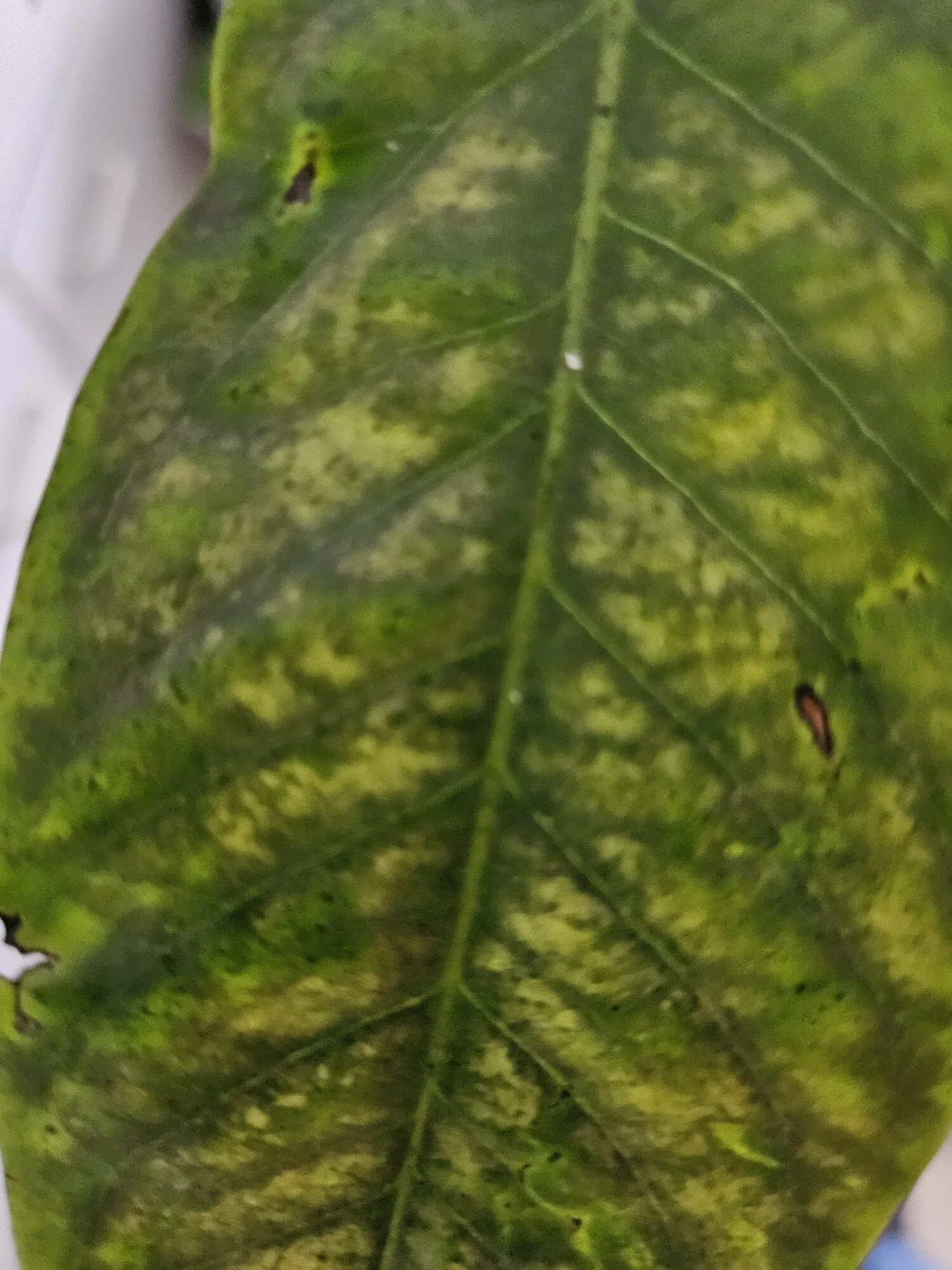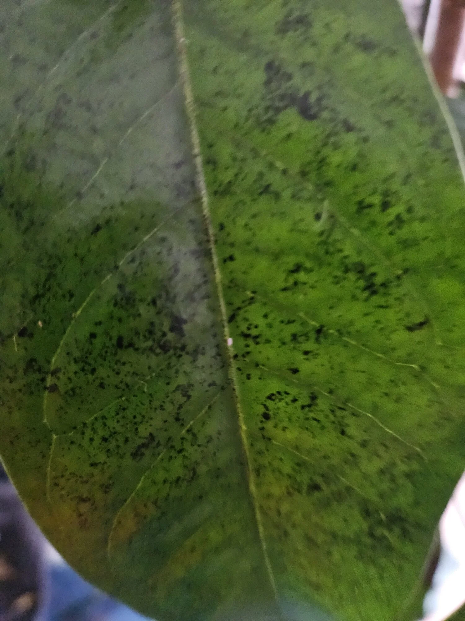 Ich behandel sie gerade gegen Wollläuse, da sich die kleinen Biester schön breit gemacht haben. Nun ist mir aber aufgefallen, dass immer mehr Blätter schwarz gesprenkelt sind. Ein Blatt ist auch heller geworden. Woran kann das liegen? An den Wollläusen? Sonnenbrand? Nährstoffmangel? Krankheit?