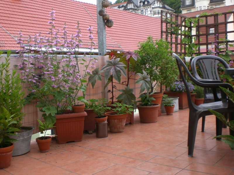 Hallo Eva, ich gieße mit Regenwasser und einem Schlauch. Ca. eine Dreiviertelstunde, wenn ich es ordentlich mache und dünge. Ist aber bequemer als im Garten. Ja was habe ich denn so ... Bronzefenchel, 2x Physalis, 2x Pepino, Sonnenblumen, Salbei verschiedene, Wanne mit Wasserpflanze die mal blau blühen soll, Aukuben, Malven, Rizinus, Süsskraut, Banane noch klein, 2 Zitrusbäumchen selbstgezogen, Wanne mit Seerose, Clematis, Hopfen, Gurke, Zebragras, Feige, Schnittlauch, Petersilie, Federmohn, irgendso eine lilablättrige, Olive, Pfefferminze für den Tee, Enzianbaum, 3 Sorten Tomaten, Essigbaum noch klein, verschiedene Callas, Melisse für den Tee, Zitronengras, Pälmchen selbstgezogen, Funkie, Kletterhortensie, Yucca, Farn, Hortensie und diverse Zimmerpflanzen ... ist ja wirklich ne Menge und da habe ich gar nicht alle Töpfe bepflanzt. Diesen Winter war ja sehr viel erfroren. Ich habe mich entschieden Sachen zu pflanzen, die nicht reingeschleppt werden müssen. Das habe ich natürlich nicht geschafft aber wenigstens nicht solche riesigen Gewächse wie die Oleander, die ich erfrieren lassen habe...