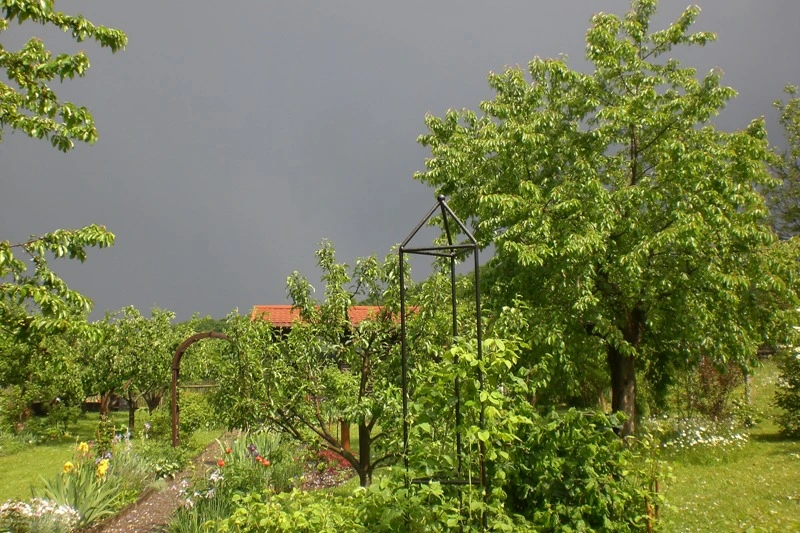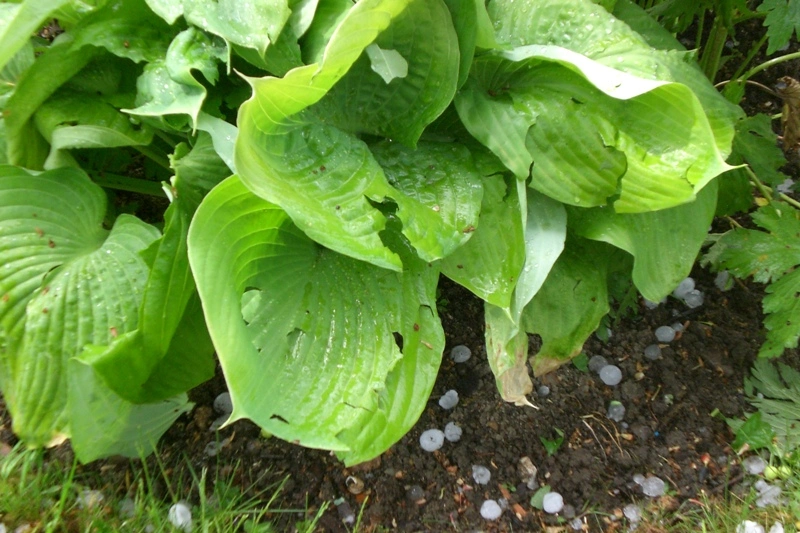 Puh ... hatte ja so sehnlichst auf Regen gewartet, nun war er da mit Eisbrocken so groß wie ... jedenfalls viel zu groß und viel zu viele! Hatte gerade meinem Mann gezeigt wie schon die Funkien dieses Jahr sind ... gar nicht von Schnecken zerfressen. Jetzt müsstet Ihr die mal sehen ... heul!