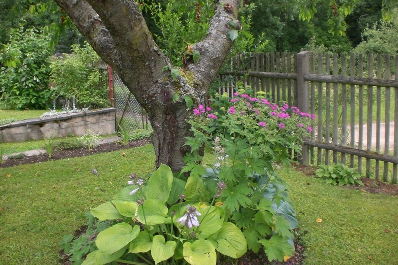 Ich habe zwischen die Funkien Geranium gepflanzt. Allerdings wird es jetzt ganz schön eng für sie. Dachte nicht, dass die Funkien so gut unter den Bäumen gedeien, besser als auf dem Beet und sie werden so gut wie niemals gegossen. Vielleicht sollte ich die vom Beet .... lach.