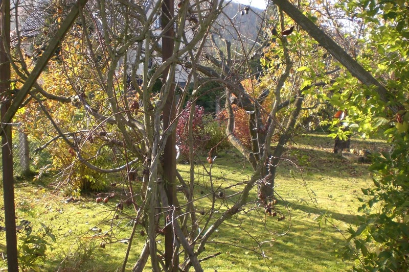 Habe mit meinem GG die letzten 2 Tage tüchtig gewühlt im Garten. Ich habe Obstbäume beschnitten, damit es im Frühjahr nicht so viel ist. Mein Mann hat es auf die Grünkippe gefahren, hat fleißig für mich geschreddert. Ich habe fast alles gepflanzt und umgepflanzt was ich mir vorgenommen habe. Was jetzt nicht ist kommt im Frühling drann. Da will man ja auch was zu tun haben ... grins. Ach so, von meinen netten alten Gartenherrschaften erwarte ich noch 1 - 6 Pflanzen ... na das werde ich noch schaffen. Dann warten wir bis die Blätter alle gefallen sind und gehen noch mal mit dem Rasenmäher drüber und ich verteile es auf die Beete, wie jedes Jahr. Und dann ist es vollbracht!