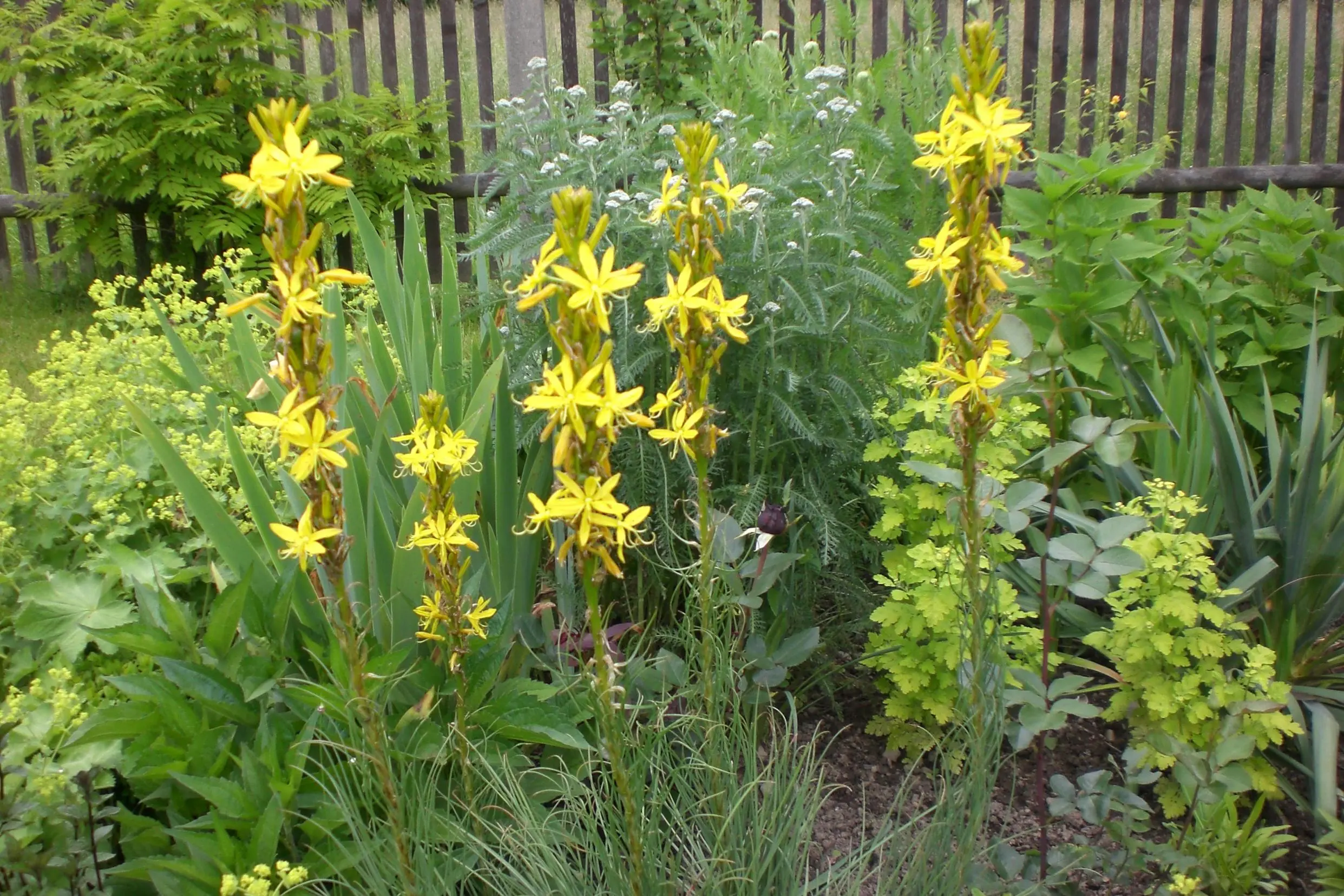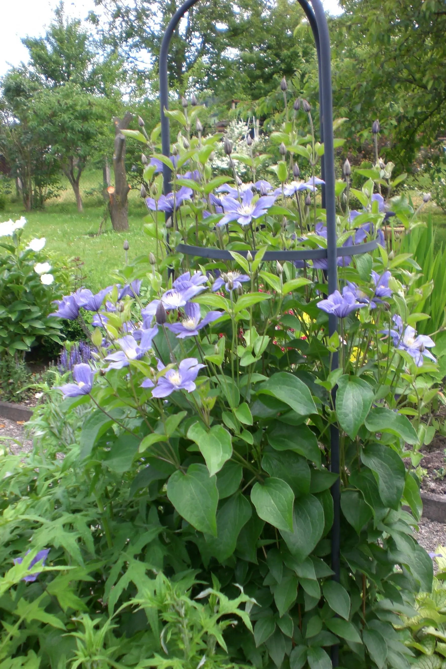 Unwetterschäden sind behoben. Durch den vielen Regen entwickeln sich so langsam Monsterstauden. Diese musss man allerdings zusammen- und anbinden. Blüten über Blüten gibt es dieses Jahr. Das Klima scheint für die Natur gut gewesen zu sein.