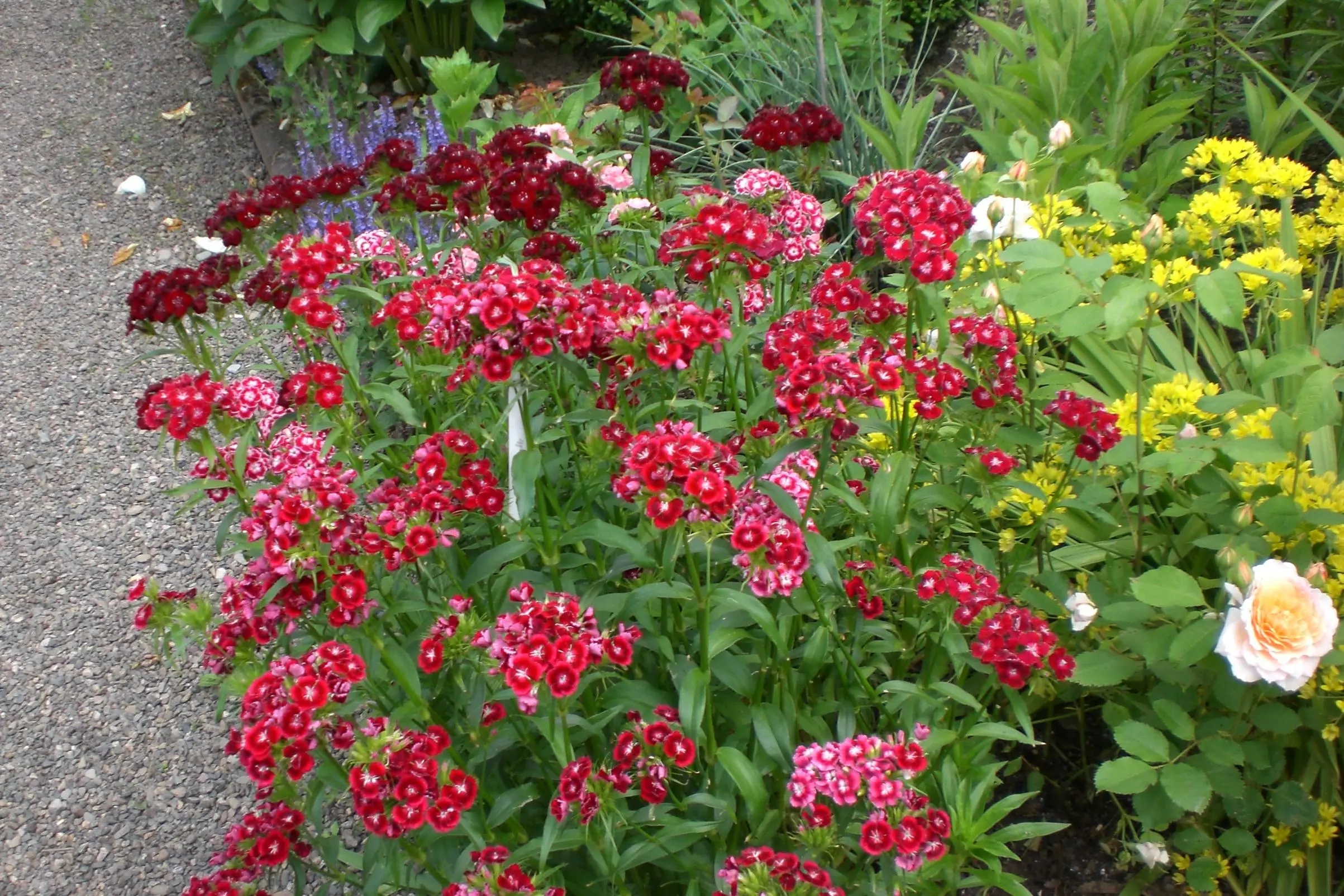 danke für Deinen netten Gartenbesuch! Auf dem 3. Bild das ist eine Federnelke. Die habe ich im vergangenen Jahr ausgesät und sie wächst ganz hervorragend. Meine Pflanzenvielfalt habe ich durch die Tauscherei hier im Forum und durch Selbstaussaaten erreicht. Hat Riesenspaß gemacht aber nun ist alles voll ... lach.