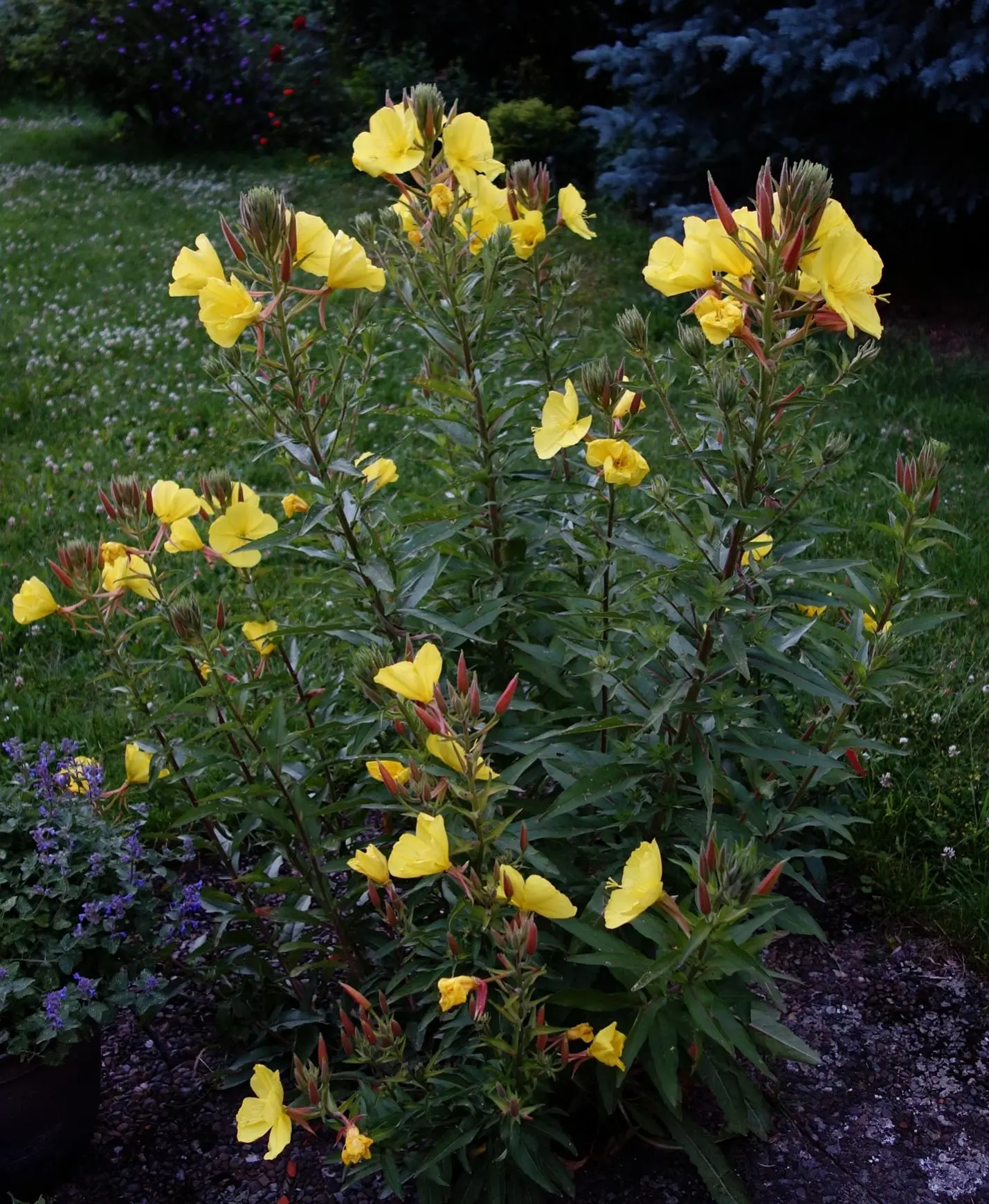 • Hab ich meine fleißigen Nachtkerzen schon vorgestellt? Dieses Jahr brauchte ich gar nichts dazu zu tun, dass sie blühen. Vorigen Sommer sind sie einem Terrassenkübel entsprungen und haben sich selbst in den Plattenritzen ausgesät. Hätte nicht gedacht, dass das so einfach geht! :grins: