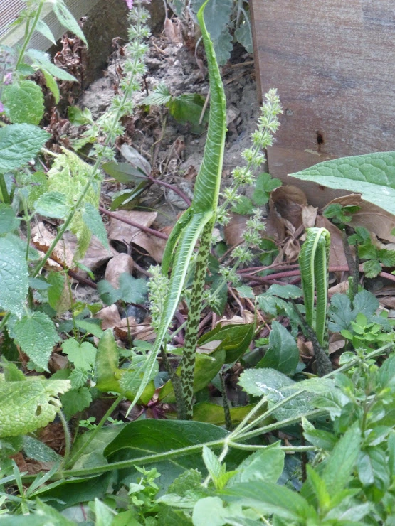 Die Eidechsenwurz hat ausgeblüht und entrollt ihre hübschen Blätter