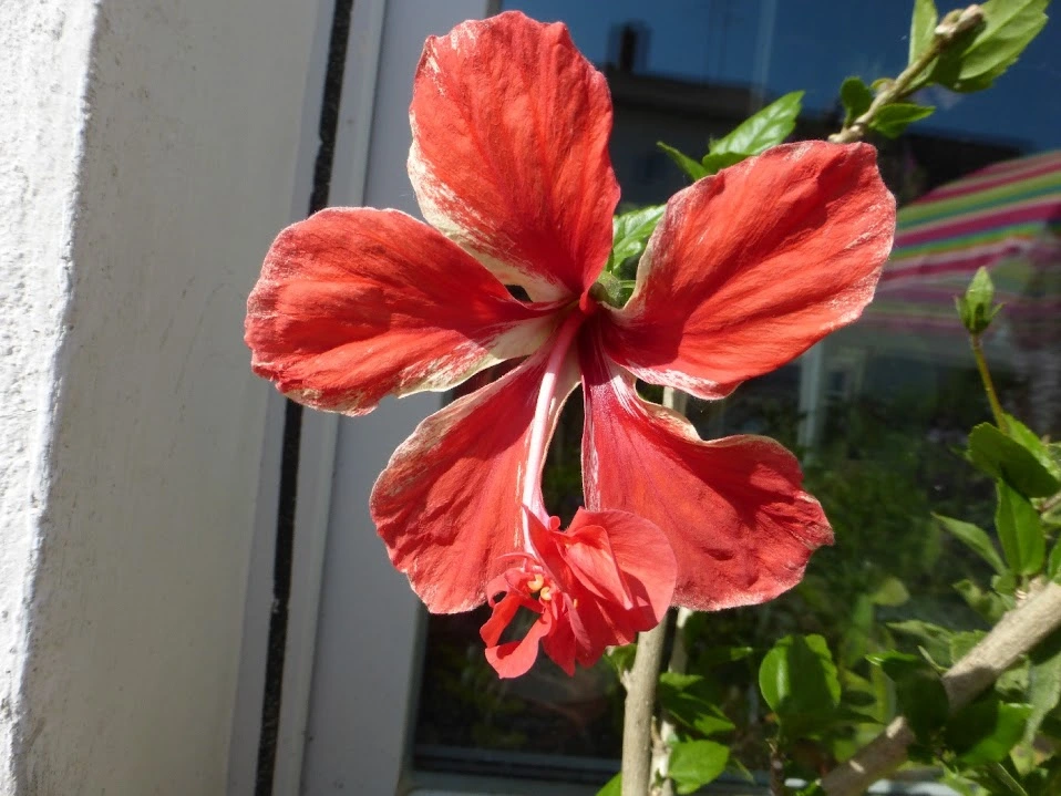 Erste Hibiscusblüte 'El Capitolio' (Hibiscus rosa-sinensis)