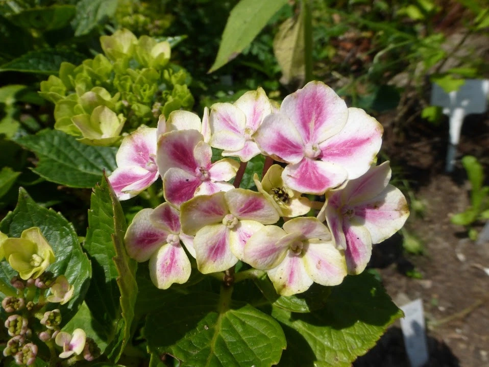 Ein ähnliches Phänomen habe ich im Vorgarten. Eine alte Bauernhortensie, die schon seit Jahren dort steht und eine kleinere, die ich - bestimmt jetzt auch schon vor fünf oder sechs Jahren in die Nähe gepflanzt hatte. Beide haben immer blau geblüht. In 2012 habe ich die kleinere einige Meter weiter verpflanzt, letztes Jahr hat die kleinere gar nicht geblüht und dieses Jahr bietet sich mir dieser Anblick...