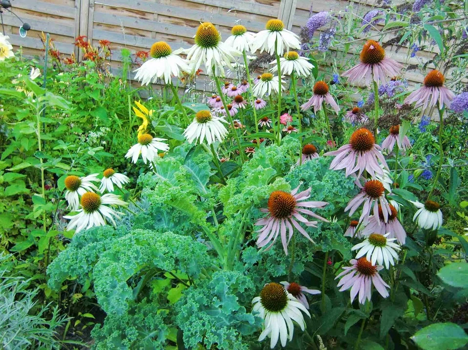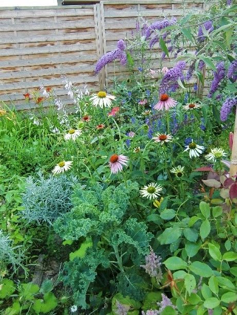Hier nochmal die Doppeldecker-Gesamtansicht - mit dem schicken Grünkohl, der sich seit Herbst 2012 tapfer hält. Würde man Samen selektieren, wäre das wohl Kandidat Nr. 1, weil er immer noch nicht blüht, während die anderen längst Samenreife erlangt haben.