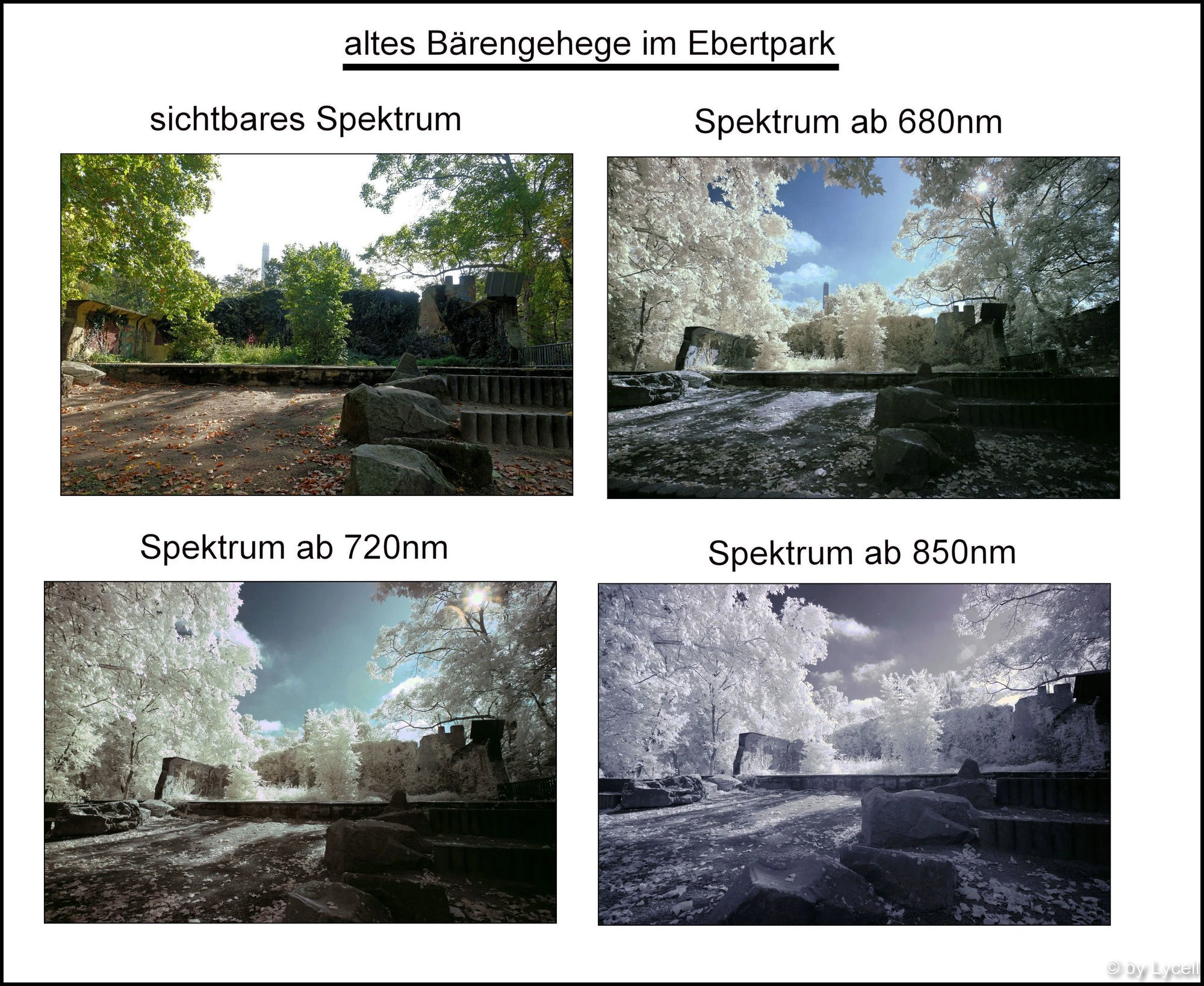 Aber ich bin ja selbst auch nicht interessiert dran, solche Aufnahmen zu machen. Ich finde sie nett anzusehen und würde vermutlich mal so Richtung "Gruseliges" experimentieren - man kann Dinge ja ziemlich abgestorben aussehen lassen damit - aber so auf Dauer würde mich das jetzt nicht reizen. Mein Freund ist da auch mehr in der Realität und weniger im Spielerischen-Mystischen, ihm geht's wohl mehr um das Hervorheben von warm-kalt Kontrasten, also z. B. schneebedeckte Gipfel mit blauem Himmel. Wenn ich ihn richtig verstanden habe zumindest.