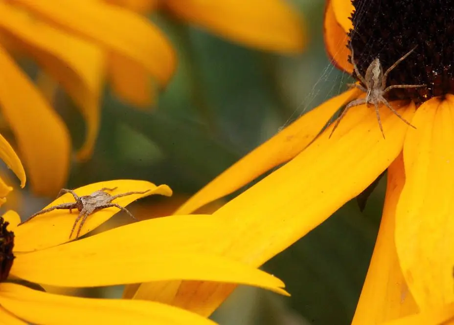 • Auf meinem Sonnenhut tummelten sich heute mehrere junge Listspinnen.