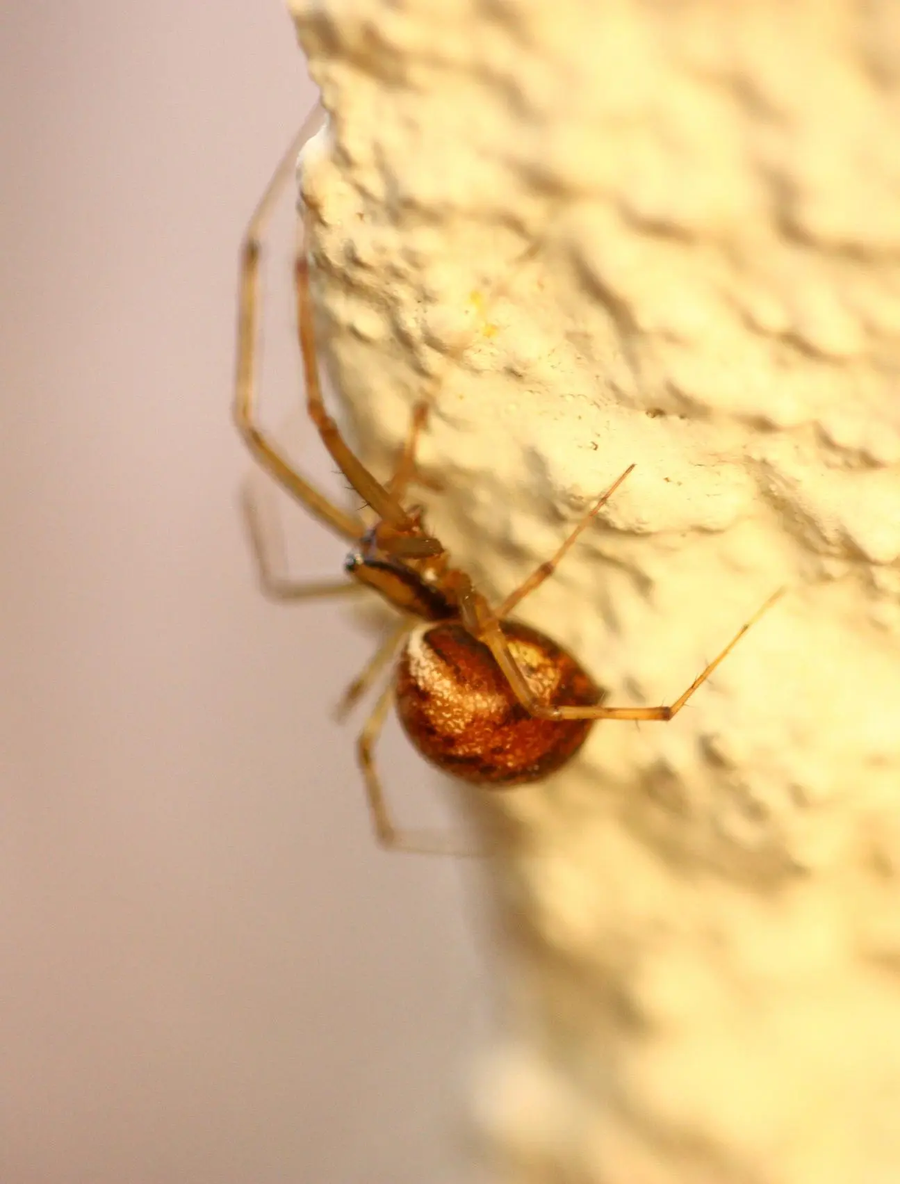 Sind das diese kleinen Spinnen, die unten, kurz über dem Fußboden verkehrtherum in der Ecke in ihren Nestern hängen? Kleiner Körper, dünne Beine?