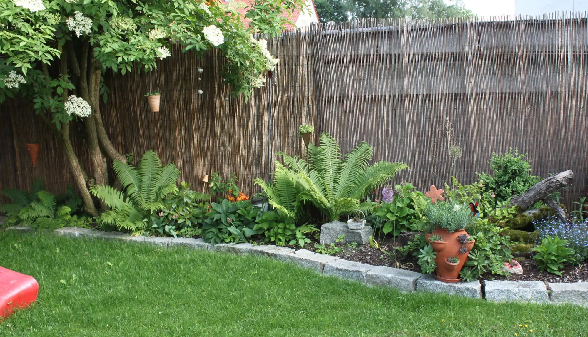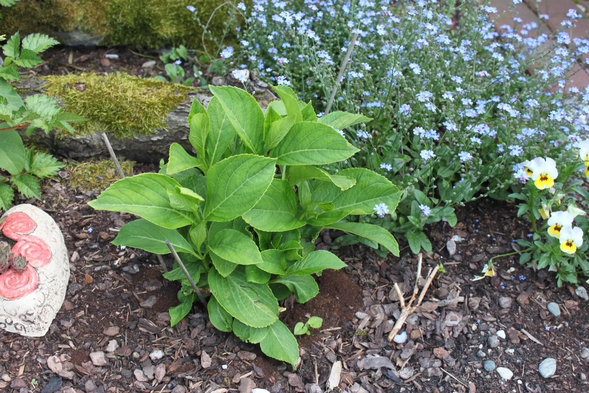 das Hortensienhecken-Projekt habe ich aufgegeben. Unser befreundeter Landschaftsgärtner hat das Beet jetzt anders gestaltet. Mit Farnen, Baumstamm, 2 Hortensien, 2 Azallen, etc...