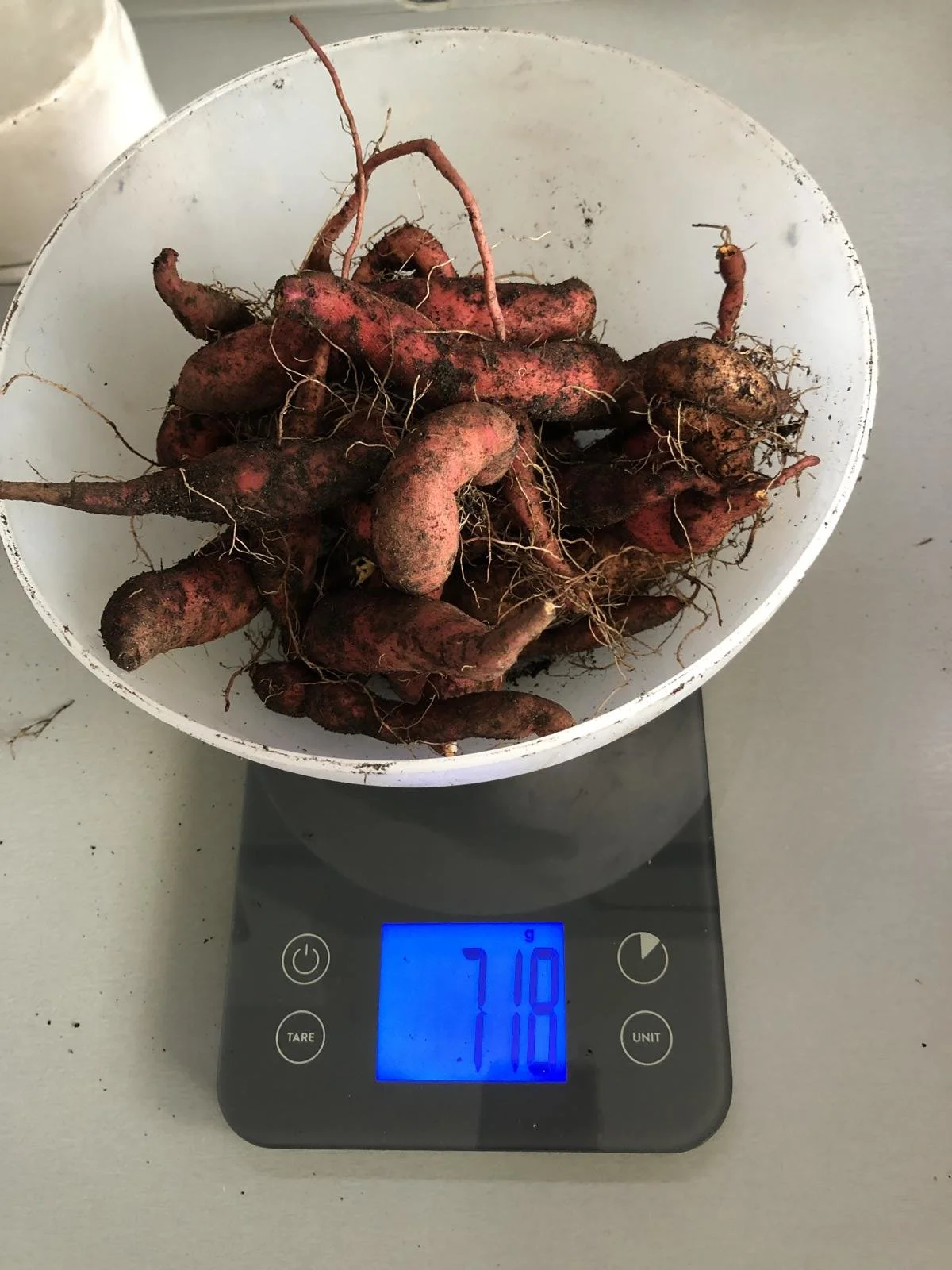 Die Ausbeute lag bei 2,7 KG (inkl. vieler sehr kleiner Knollen = großzügig gewogen. Gegenüber den beiden bisherigen Nullnummern macht das wirklich Mut für einen weiteren Versuch in 2021.