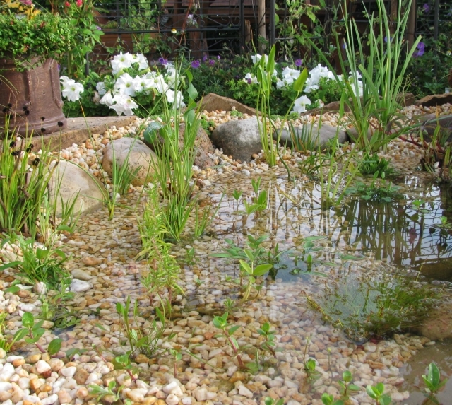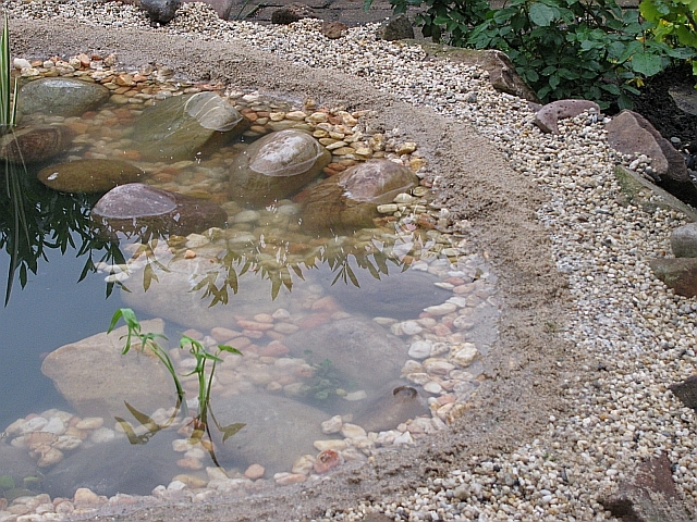 Die Sumpfzone sollte nur 5 cm über dem Wasserspie liegen.