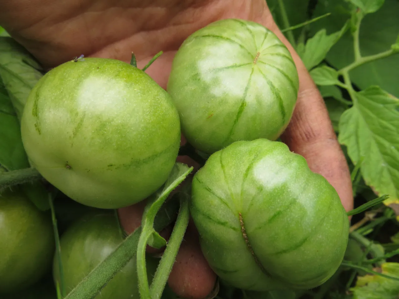 - das Einzige, was mir aufgefallen ist, sind zwei Tomaten, die durch's Laub lugen, die auch so grün-braun sind...