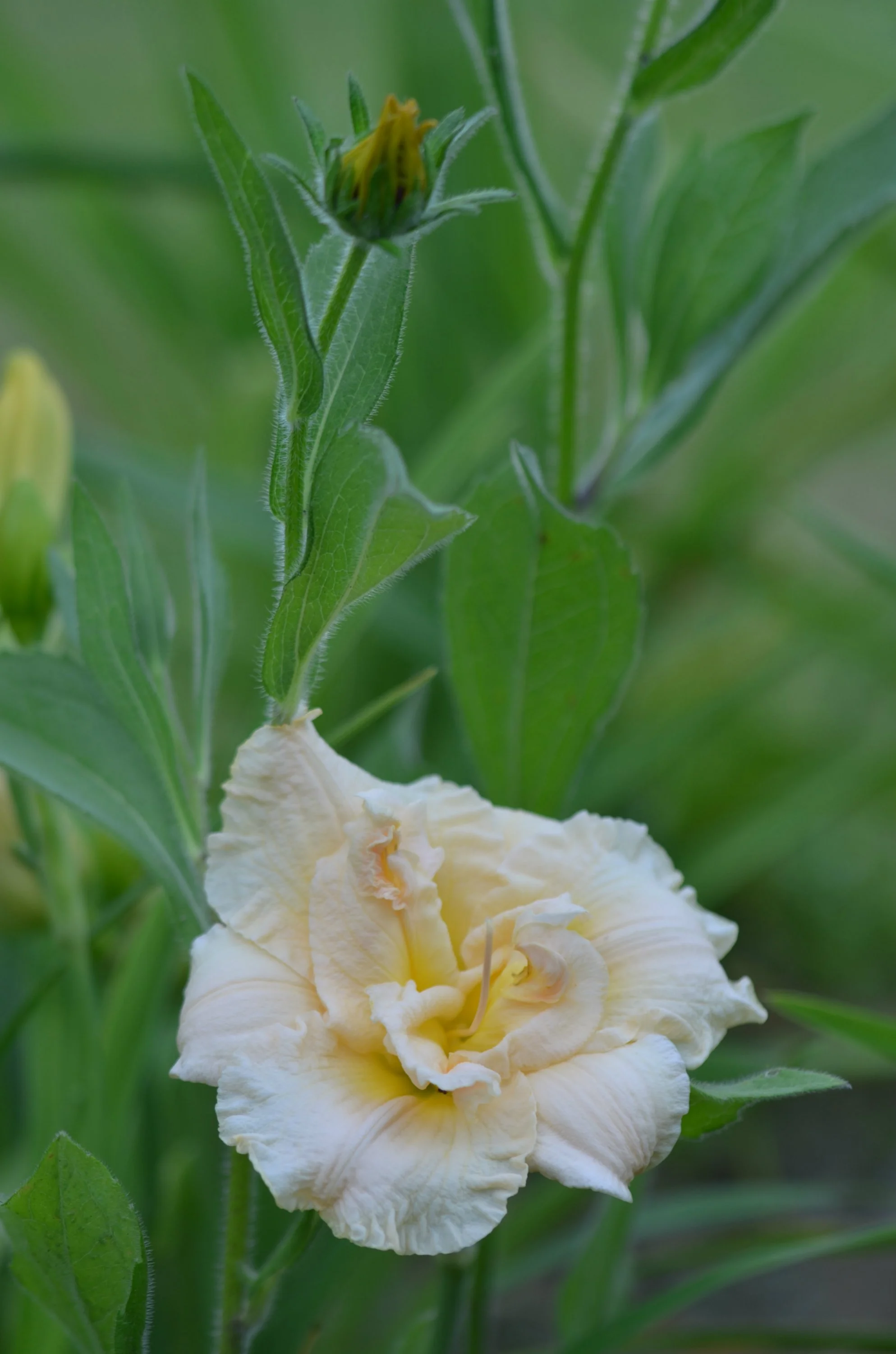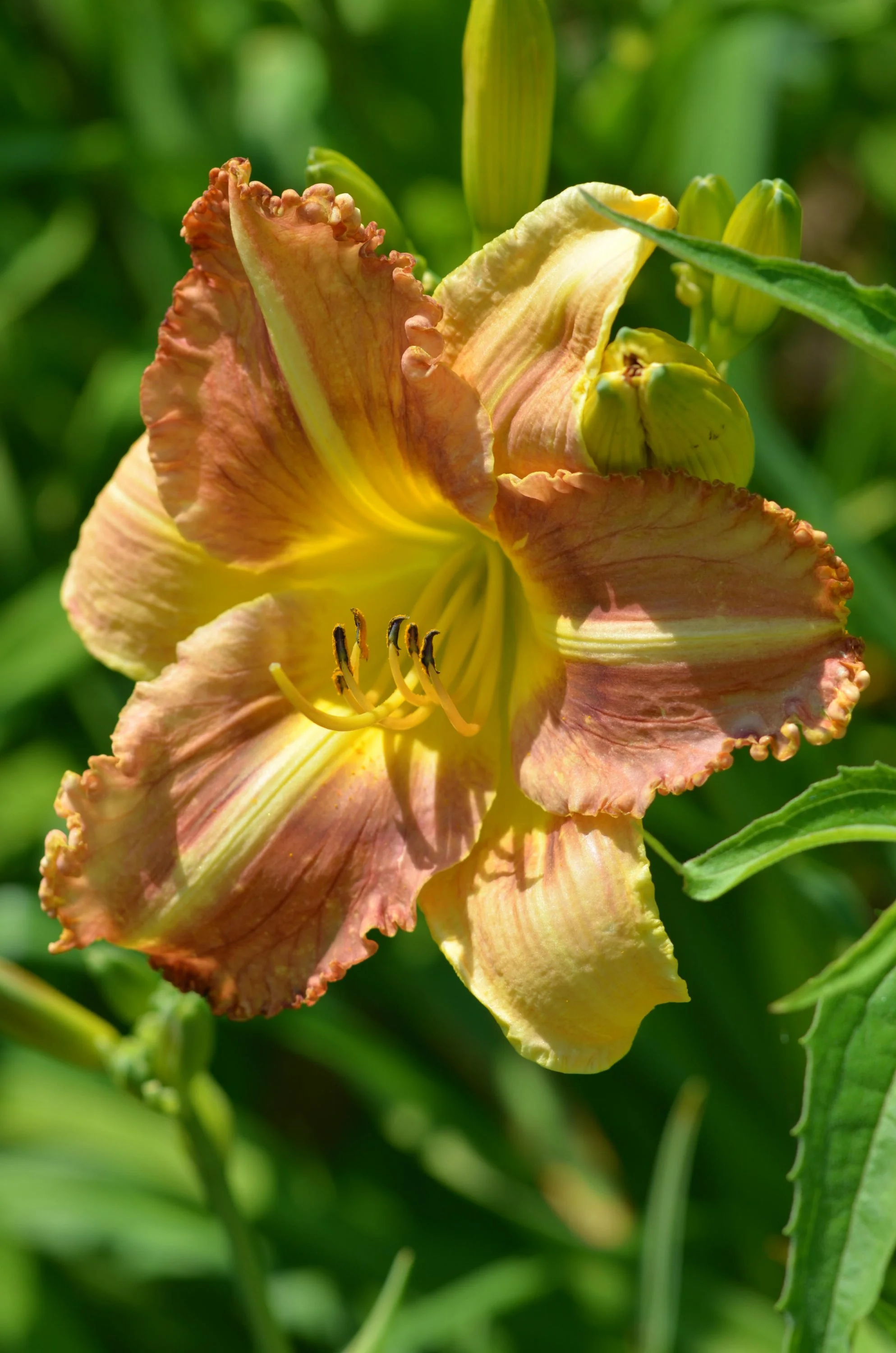 Namenlos wächst diese Taglilie tapfer zu Füßen der Wildhecke in der einmal jährlich gemähten Wiese. Sie ist die erste, die blüht.