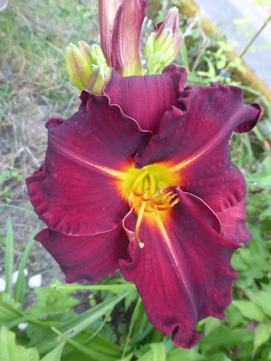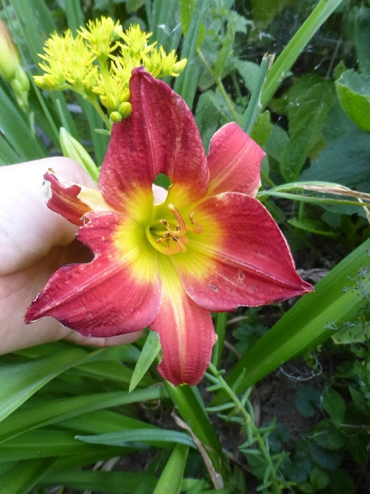 Hier ist gestern die 'Going Bananas' aufgeblüht - leider hat der Regen die Blüte ein wenig verwässert.