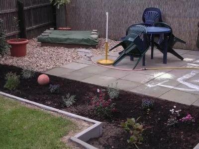 Dann habe ich mir spontan noch überlegt, das Beet an der Terasse zu erweitern. Da ist ja schließlich noch Platz zum Sandkasten hin