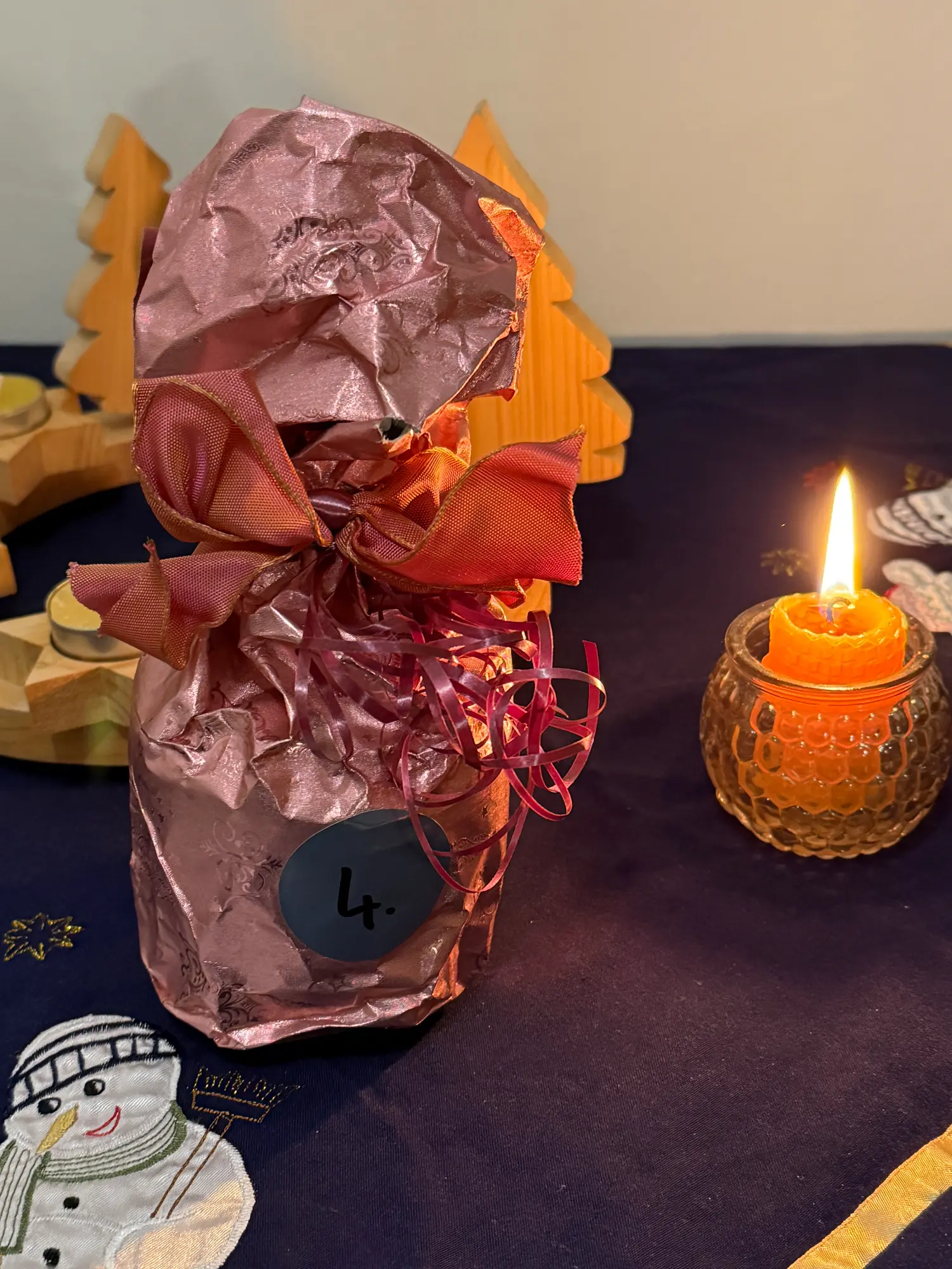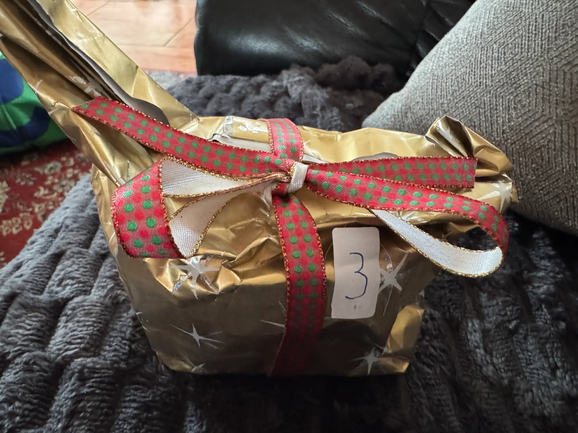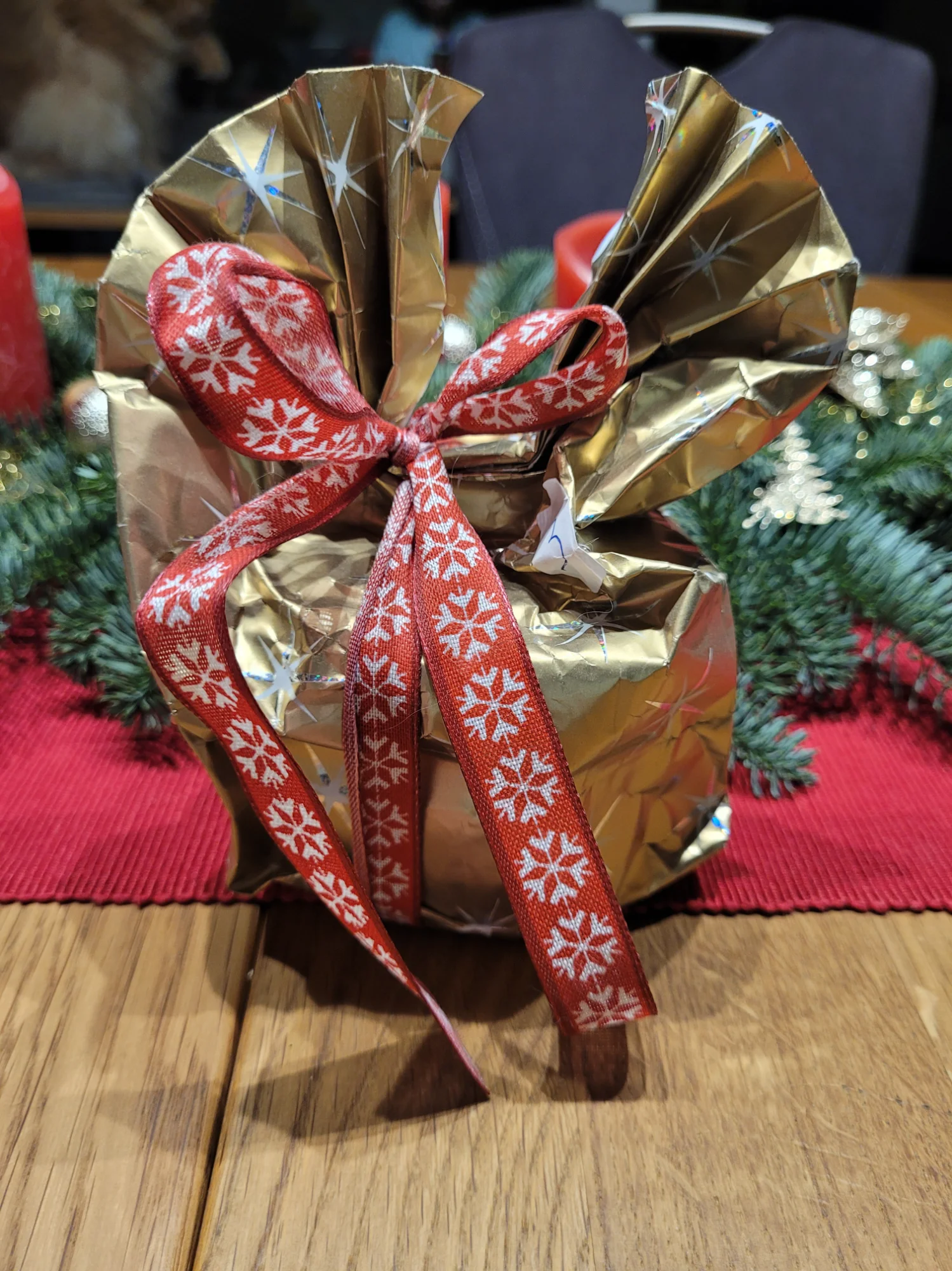 Mein schön verpacktes Geschenk habe ich schon ausgepackt.
