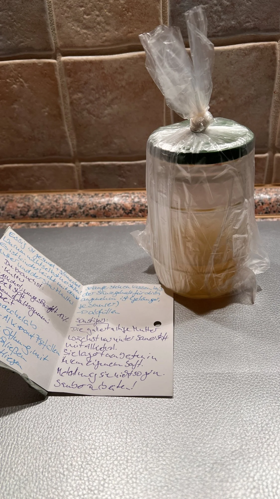Jetzt weiß ich auch, was das ist. Kenne ich gar nicht.Wenn ich richtig verstanden habe, handelt es sich um eine Essigmutter?