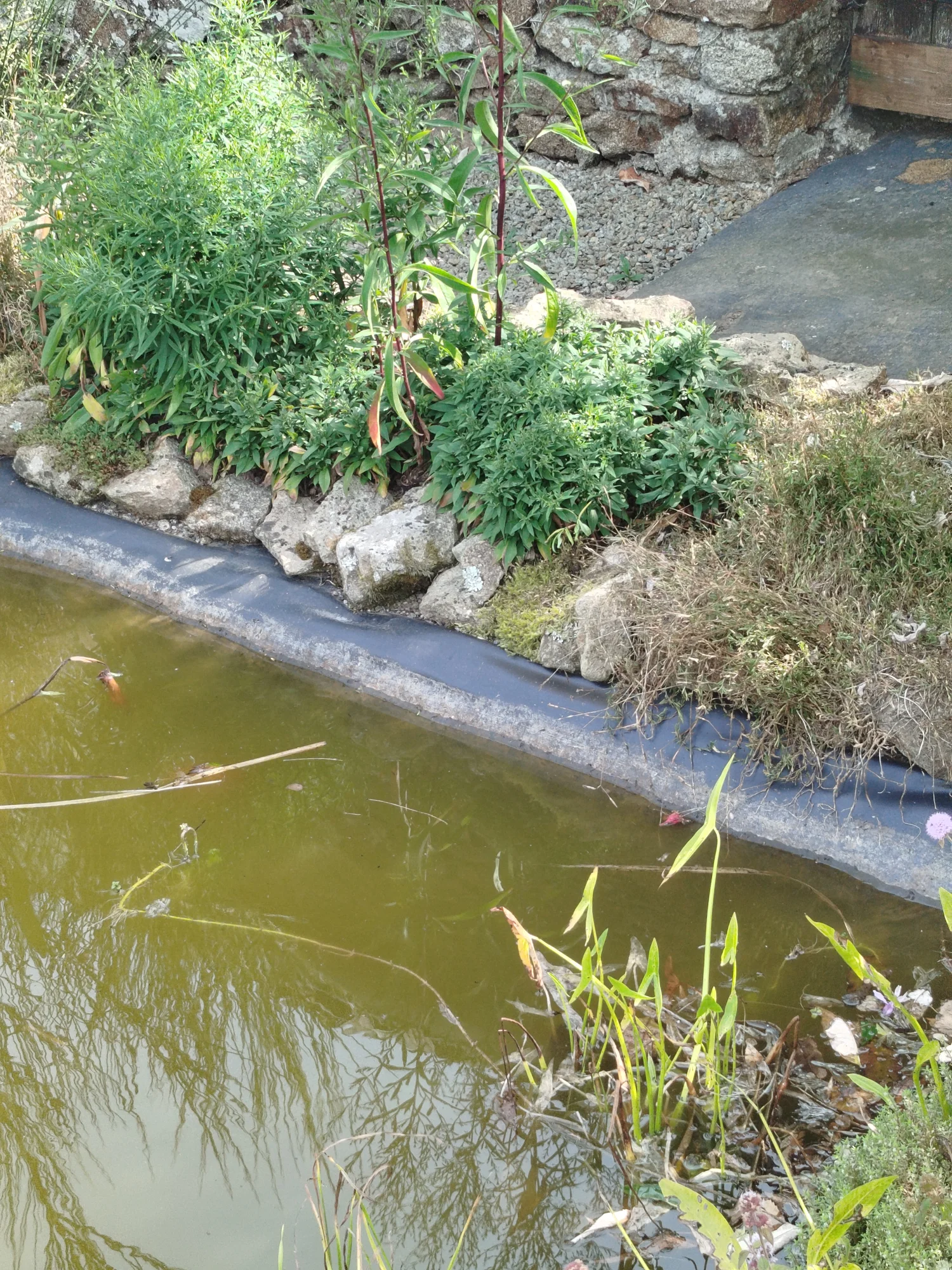 Das Problem tritt so schon seit Anfang des Teiches auf (schon bevor es Fische gab). Die Fische gedeihen jedoch wunderbar.