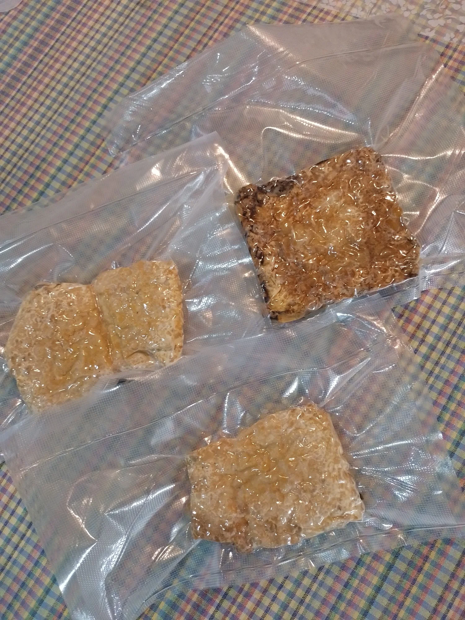 Welcher schmeckt Dir besser. der aus Sojabohnen oder aus Kichererbsen?Kichererbsen Tempeh geräuchert, sowas von lecker und dann natürlich vakuumiert