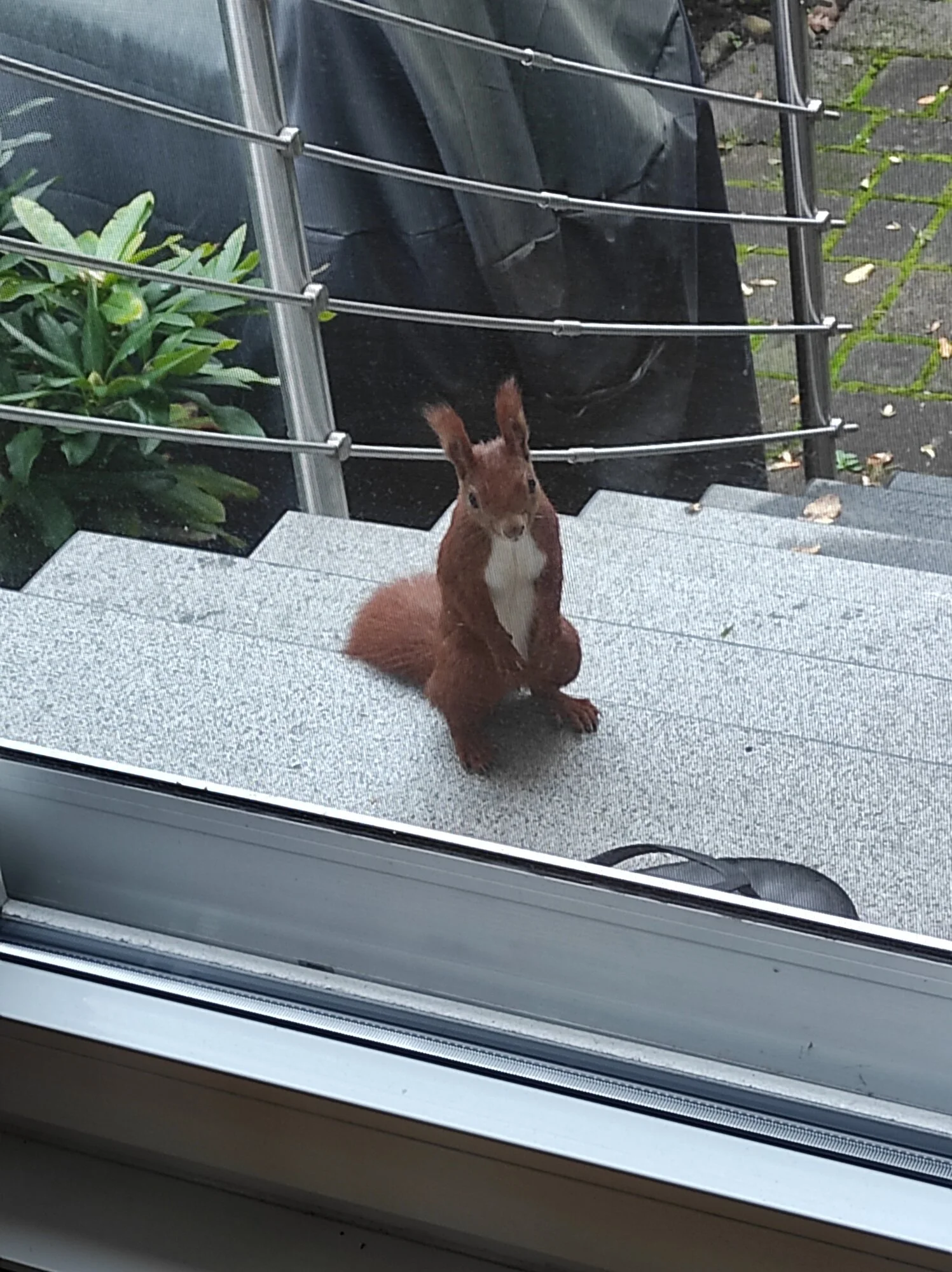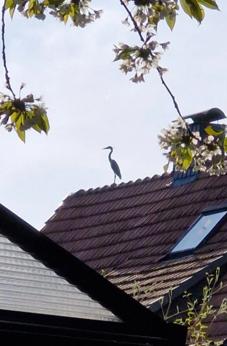 Bei mir stand dieser Besuch heute Morgen direkt am TeichMein Nachbar hat Besuch.