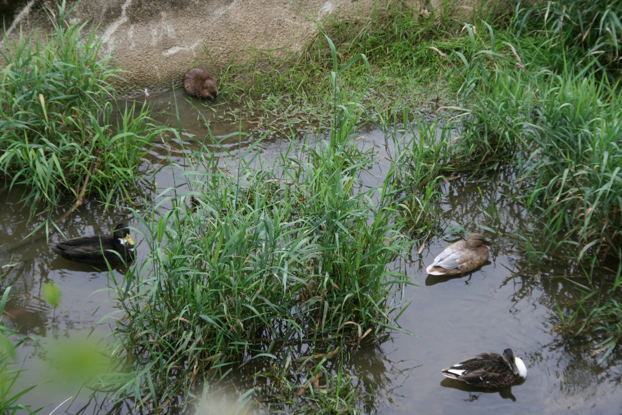 Da am Bach ist alles vertreten, von Bisamratten, jede Menge Enten. Dann Graureiher und Silberreiher, aber die nur wenn sie durchziehen. Momentan ist der Bachlauf schon so zugewachsen, das ist nicht mehr viel Wasserfläche zu sehen.