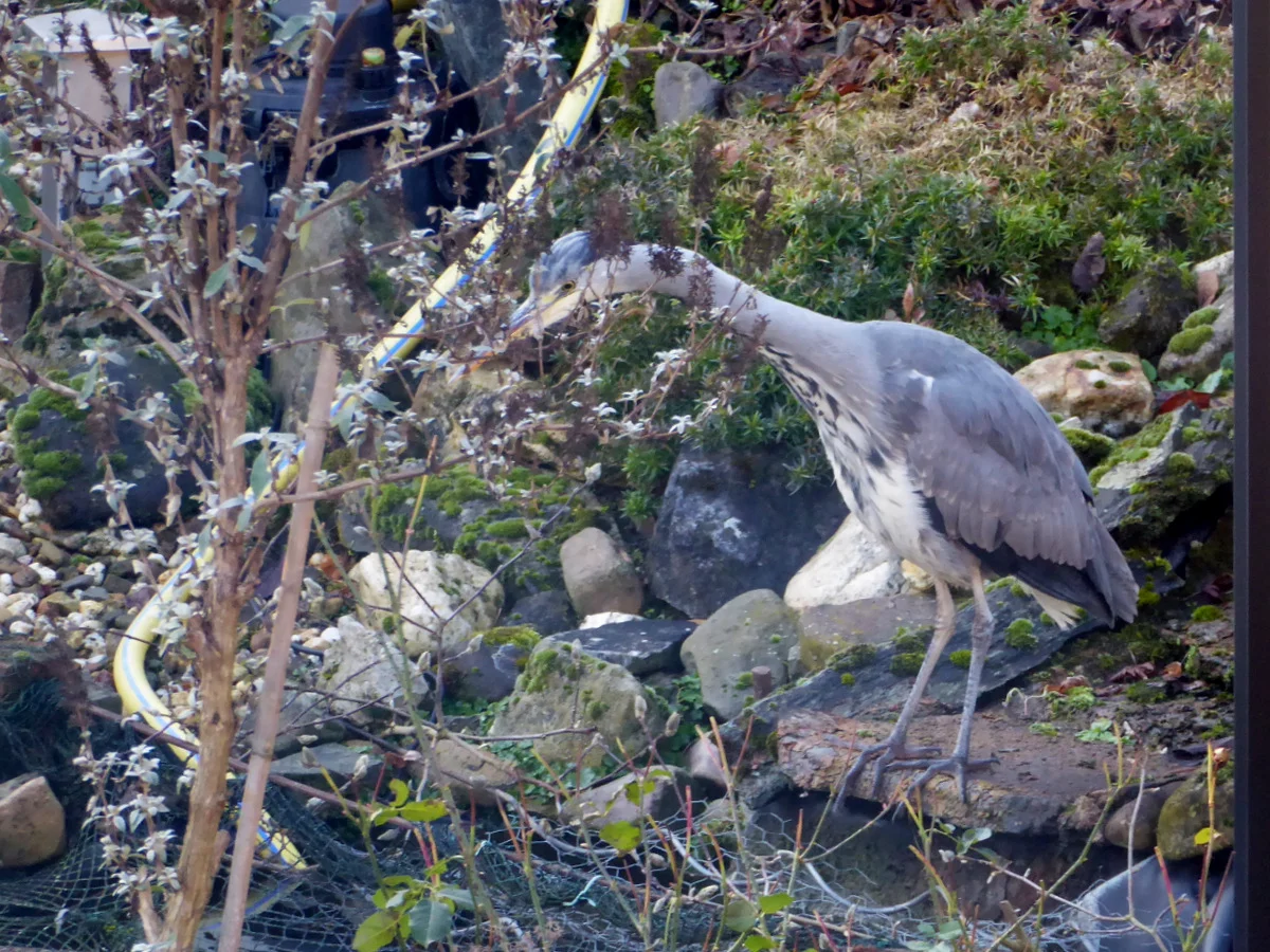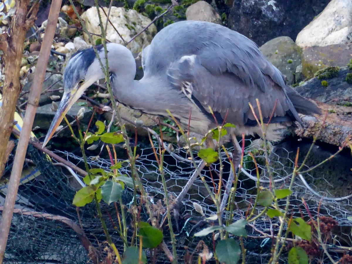 Hier in der Nähe ist ein Paradies für Fischreiher, da fließt die Niers und es gibt sehr viele Auen, wo die Vögel ungestört nisten können. Mittlerweile gibt es unheimlich viele Reiher und in der letzten Zeit sehe ich sie immer wieder im Garten. Im Teich leben Goldfische. Frösche, Molche und Kröten überwintern auch da.
