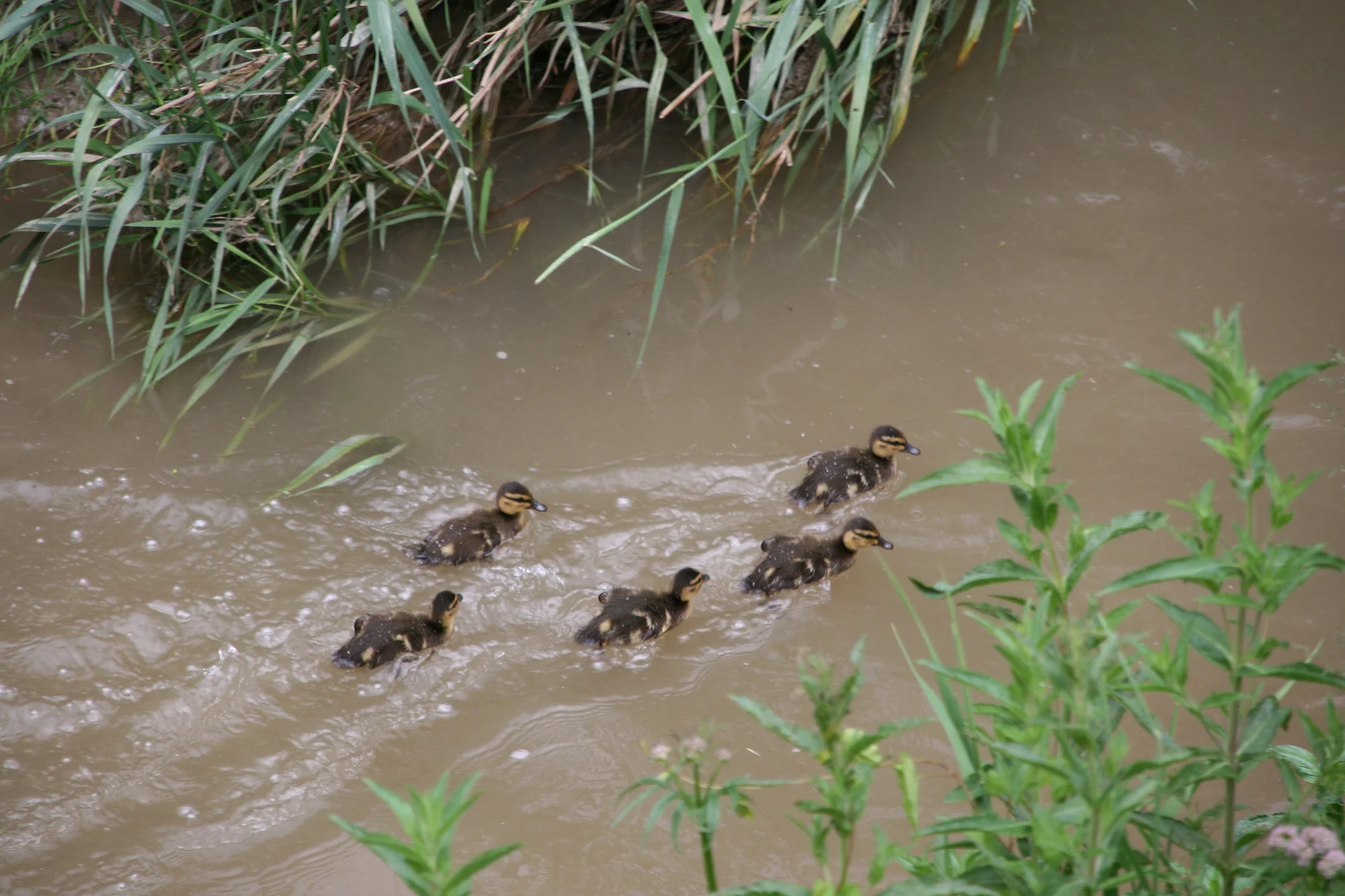 Ich habe ja hinterm Haus einen Bachlauf mit einer großen Betonwand. Das ist soviel Leben, das ist eine wahre Freude. Wenn die Enten Kleine haben, die müssen dann von unten rauf klappeln oder fliegen, die Mutter nimmt sie dann oben in Empfang und dann schwimmen sie Bachaufwärts. Das ist schön zum sehen, habe aber leider davon kein Foto.