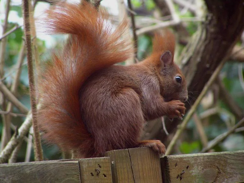 Eichhörnchen kommen regelmäßig zu uns, auch ein ganz dunkles habe ich schon gesehen. Sie wohnen gegenüber in einem großen verwilderten Garten und kommen regelmäßig über die Straße zu uns und klauen unsere Haselnüsse.... Die habe ich extra für sie vor vielen Jahren gepflanzt.