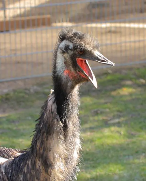 Im Gehege ist ein Paar. Der Zaun ist recht hoch. Ich musste auf ein Mäuerchen steigen um Fotos machen zu können und die Kamera über den Zaun halten. Egal wo ich aber war, mir folgte immer das Männchen. Ständig musste ich aufpassen, damit ich keine Schnabelattacke erlebe. Immer schnell, schnell Foto. Dann kam ein Mitarbeiter vom Park und ich fragte nach der Schnabelhiebgefahr. Er meinte nur: Der läuft immer nur hinterher, weil er vergnügungssüchtig ist, Papa Emu kam wieder an den Zaun und drückte seine Brust dagegen. Der Mitarbeiter kraulte ihm die Brust und den Tönen nach, die der Emu von sich gab, hat ihm das wohl mehr als gefallen - eben vergnügungssüchtig.