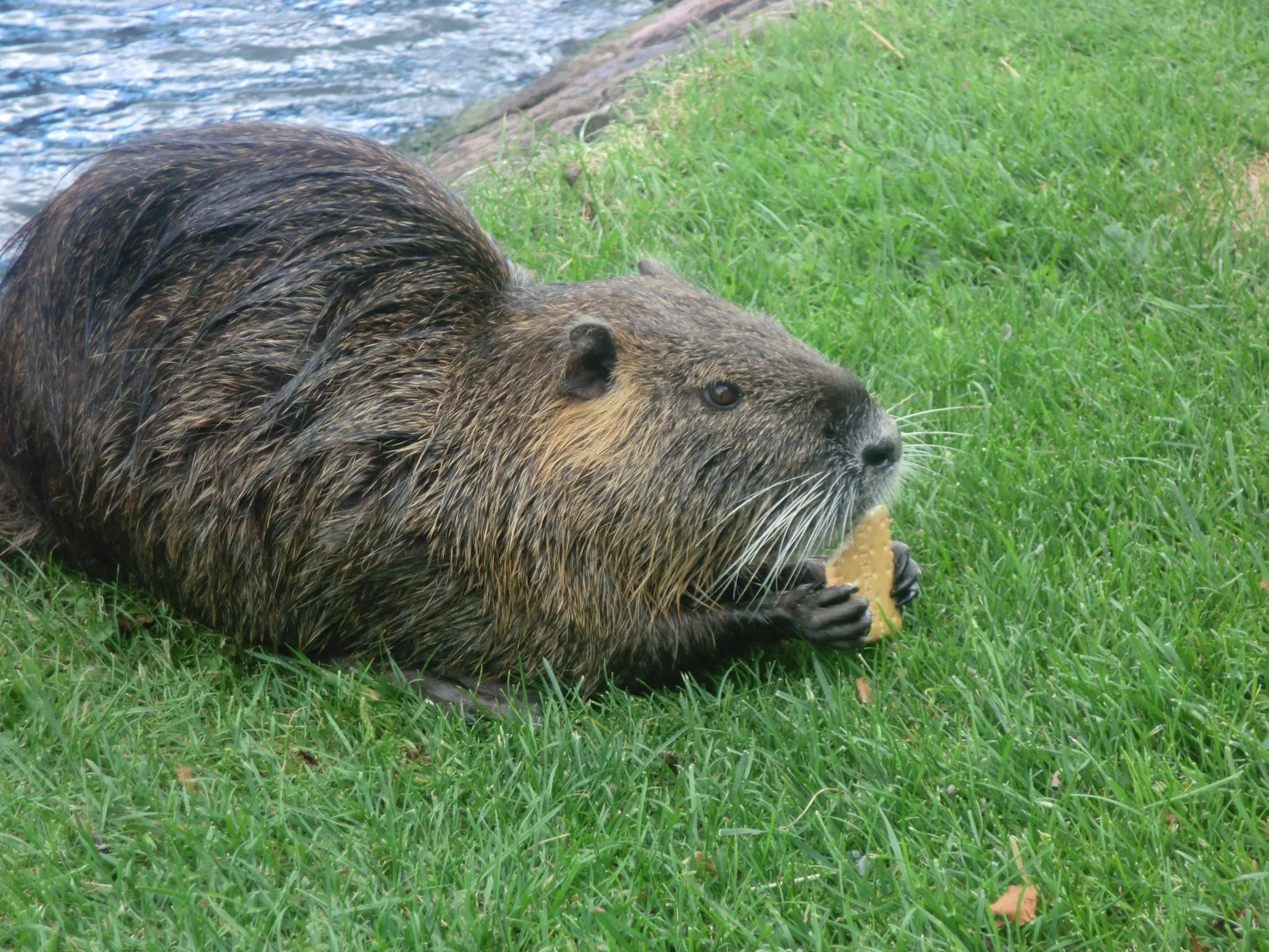 (Bisamratte, überhaupt nicht scheu, gesehen an der Ill in Straßbourg)