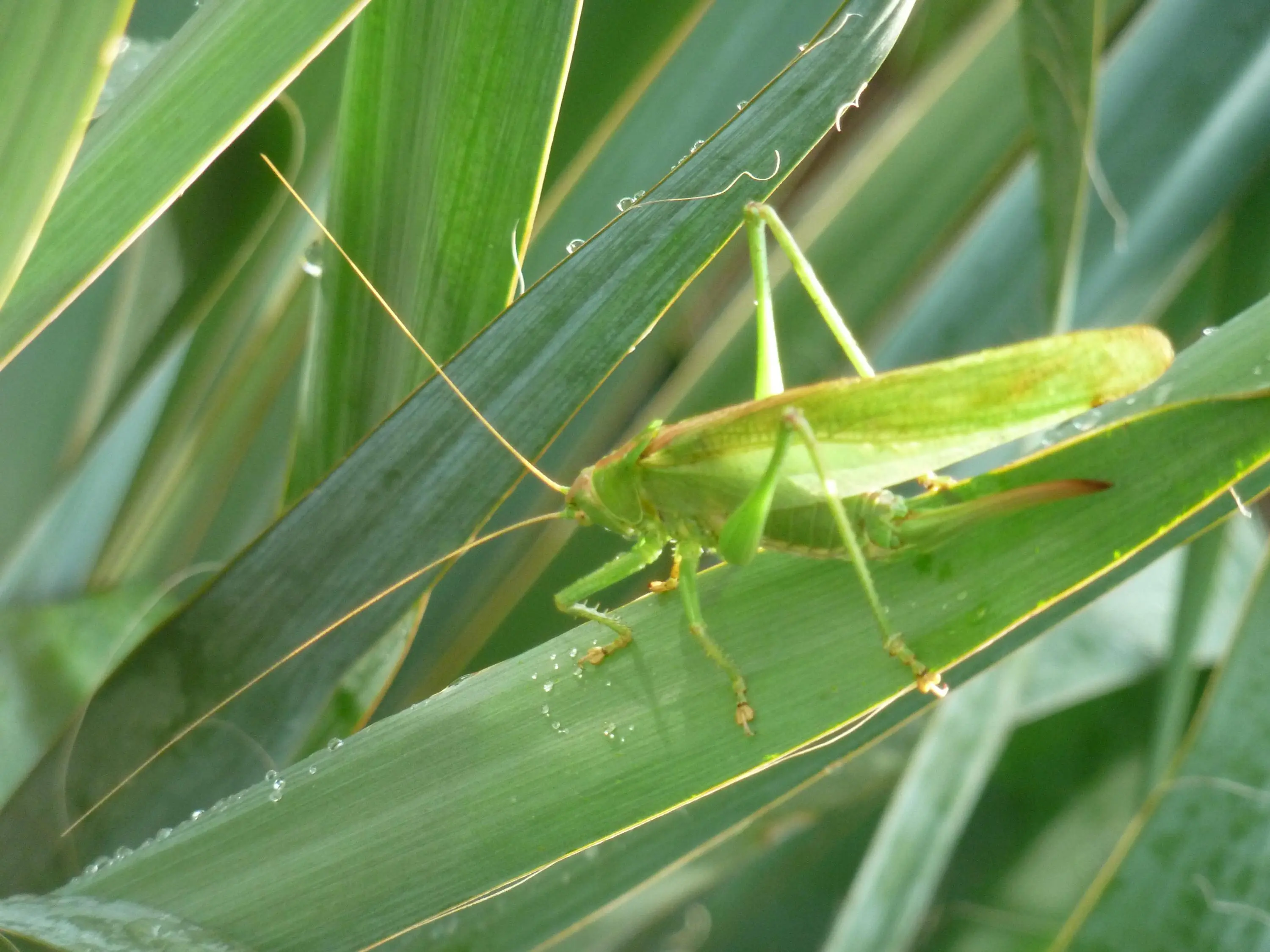 Ich war heute auf Heupferd"jagd" als mein Apparat streikte. Alle Pferdchen hüpften weg bis auf eins. Das saß friedlich auf einem Blümchenast. Na gut, dachte ich, willst dich fotografieren lassen. Also schnell die Kamera neu eingestellt und losfotografiert. Und dann passierte das: