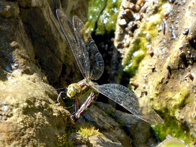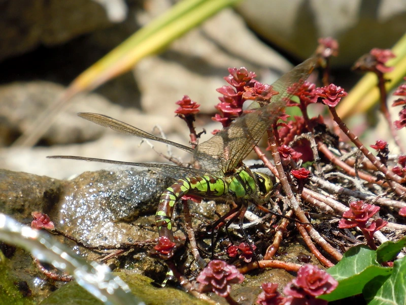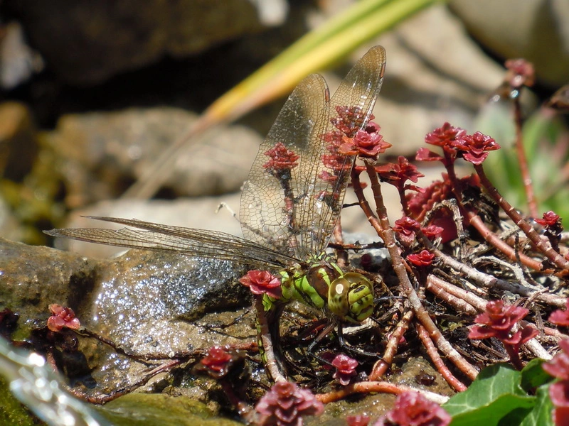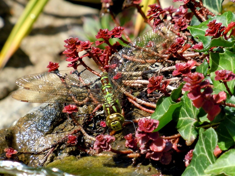 Die Libelle ist immer ruhelos um den Teich geschwirrt.
